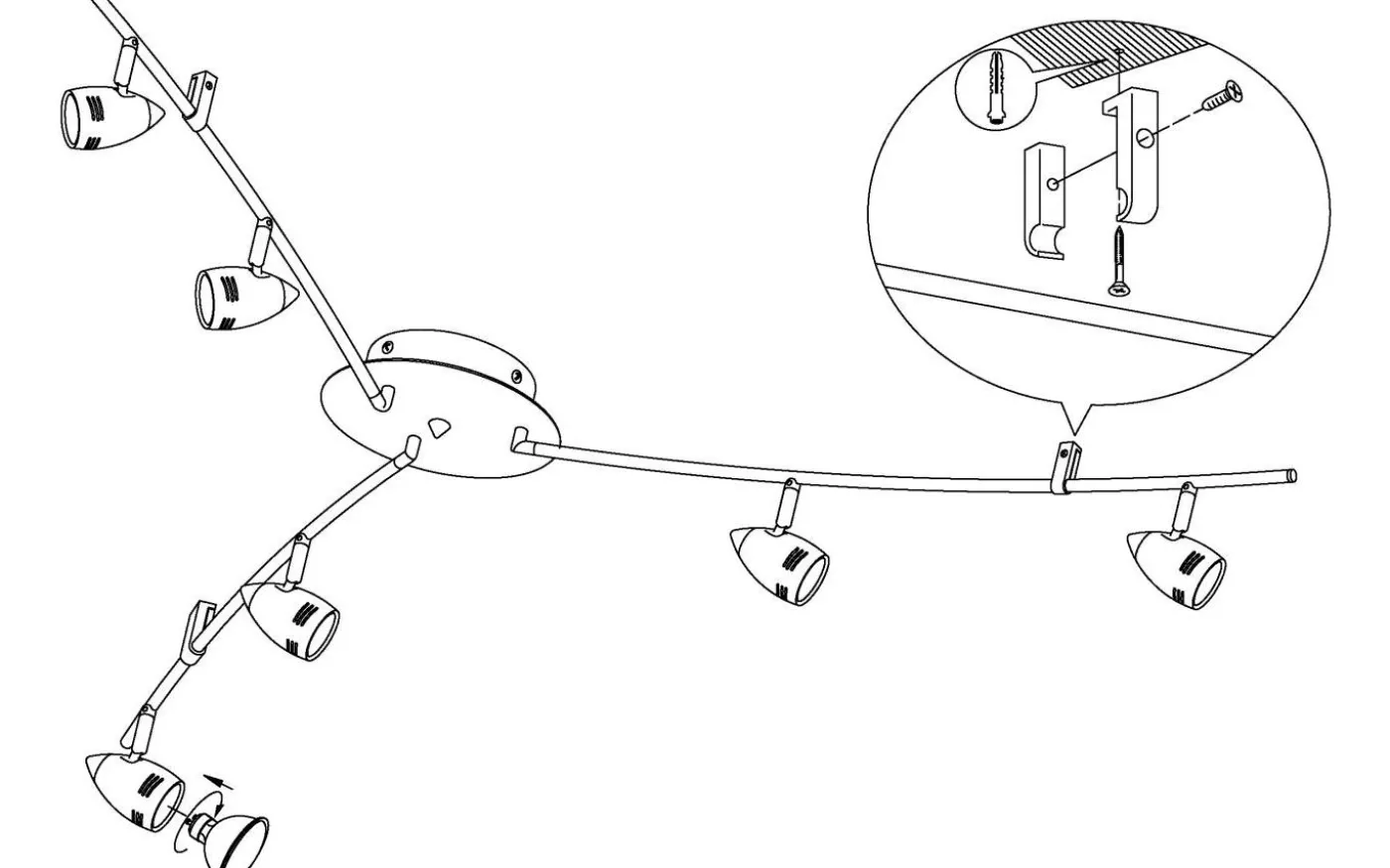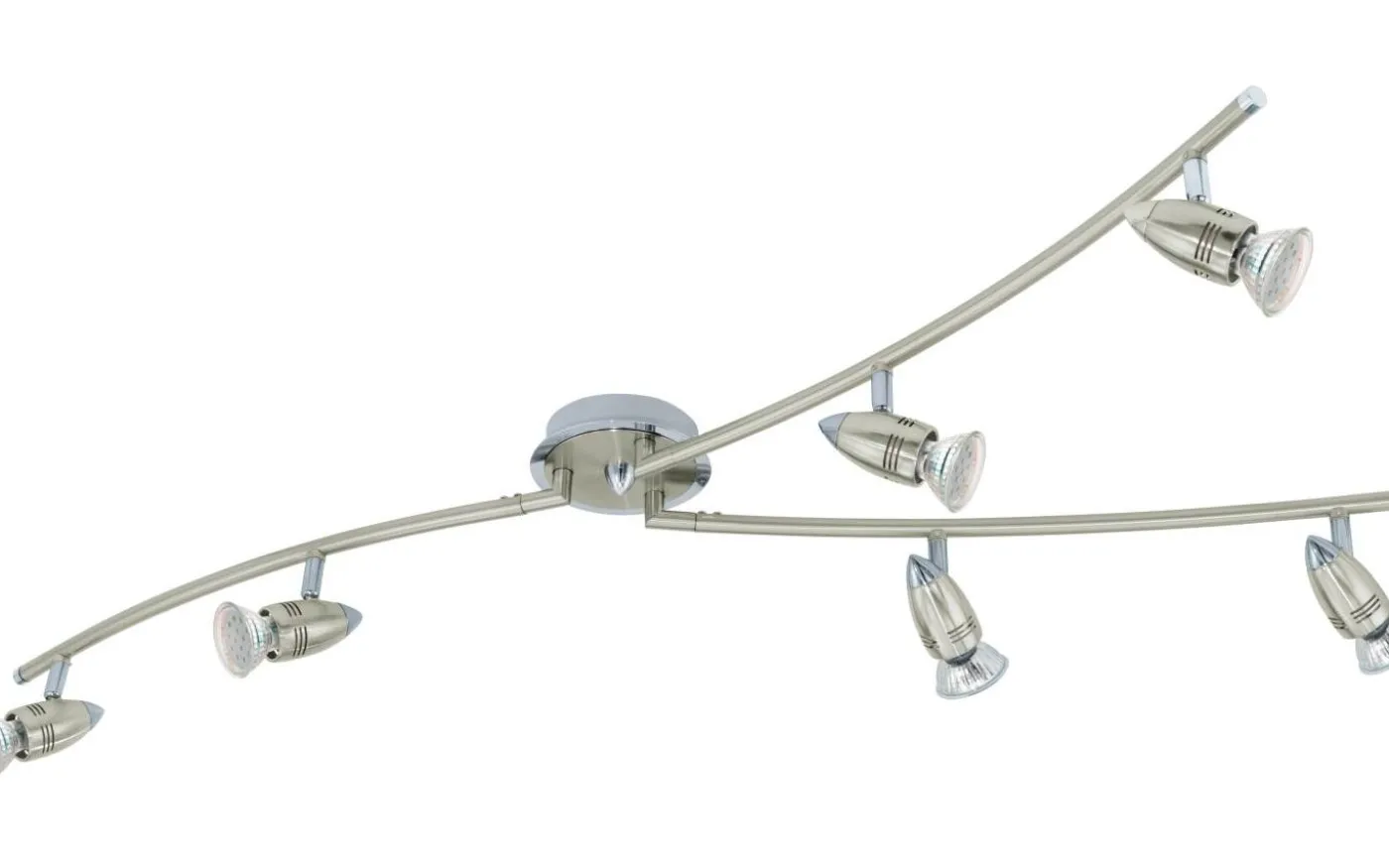 MAGNUM-LED LED-taklampan är gjord av metall i en matt nickelfinish med kromfärgade detaljer. De tre lätt böjda armarna är justerbara. Designen har sex justerbara spotlights, som ger ett behagligt varmvitt ljus tack vare de medföljande GU10 LED-glödlamporna. Takspotlighten har en klassisk design och ger fokuserad belysning i rummet, som smälter utmärkt med olika inredningsstilar, oavsett om det är i köket, vardagsrummet, sovrummet eller hallen.