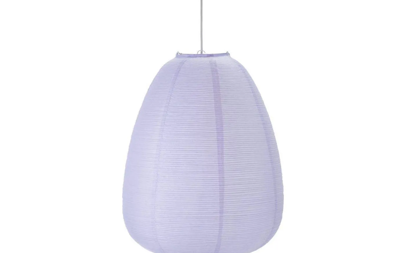 Maki takskärm från PR Home är en rispappersskärm med tät oregelbunden metalltråd som skapar ett vackert mönster. Maki är äggformad och spänns ut till sin form med hjälp av en metallexpander som medföljer. OBS! Då skärmen är gjord i fint papper behöver den hanteras varsamt när metallbågen sätts i.