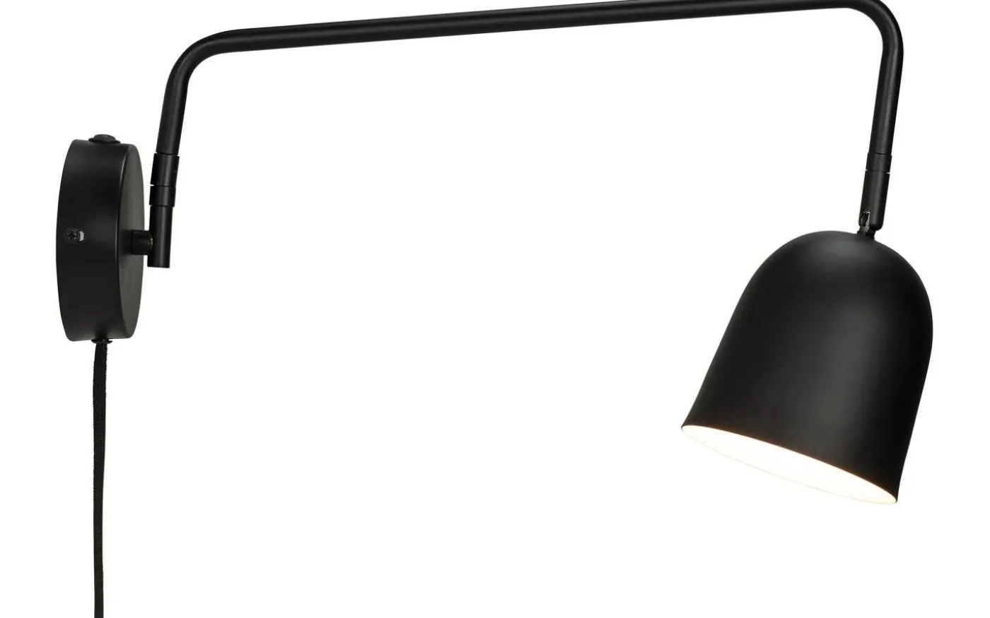 Vägglampa med bra ”arm” för läsningen. Lamphuvudet kan flyttas med plats och vridning. On/off placeras på väggtaket.