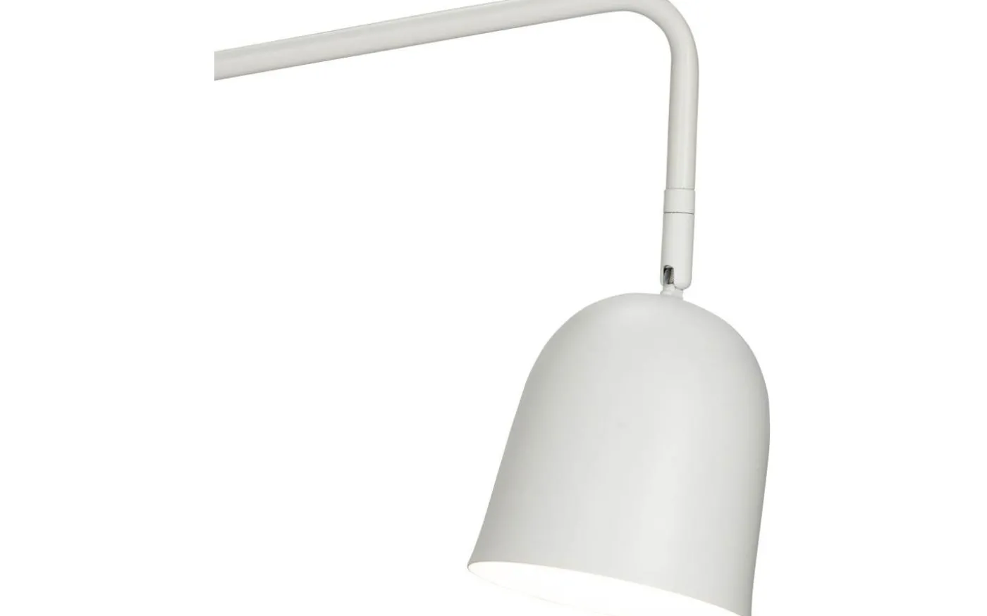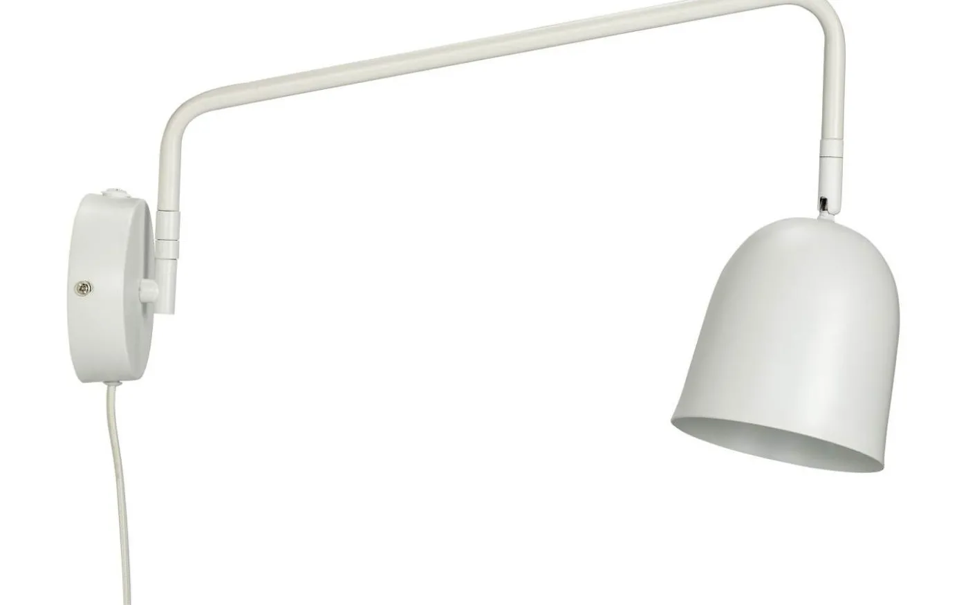 Vägglampa med bra ”arm” för läsningen. Lamphuvudet kan flyttas med plats och vridning. On/off placeras på väggtaket.