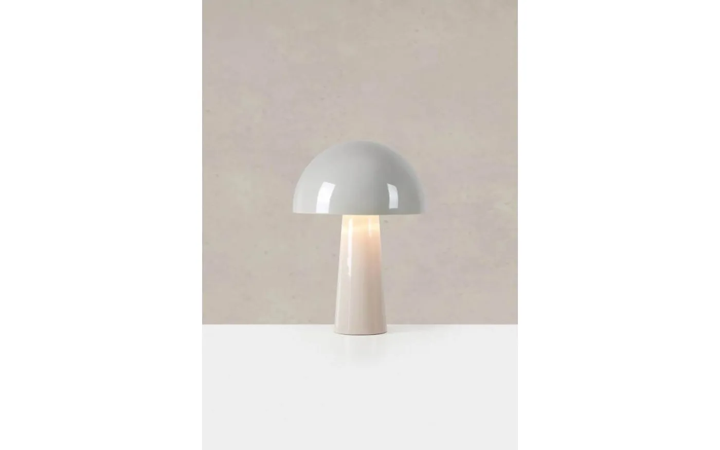 Mantar bordslampa från Markslöjd. Skärm och bas i greigefärgad metall med blank finish. 2m transparent pvc kabel med brytare och väggkontakt. 1xE14, Max 40W. Klass II. Ljuskälla ingår ej.