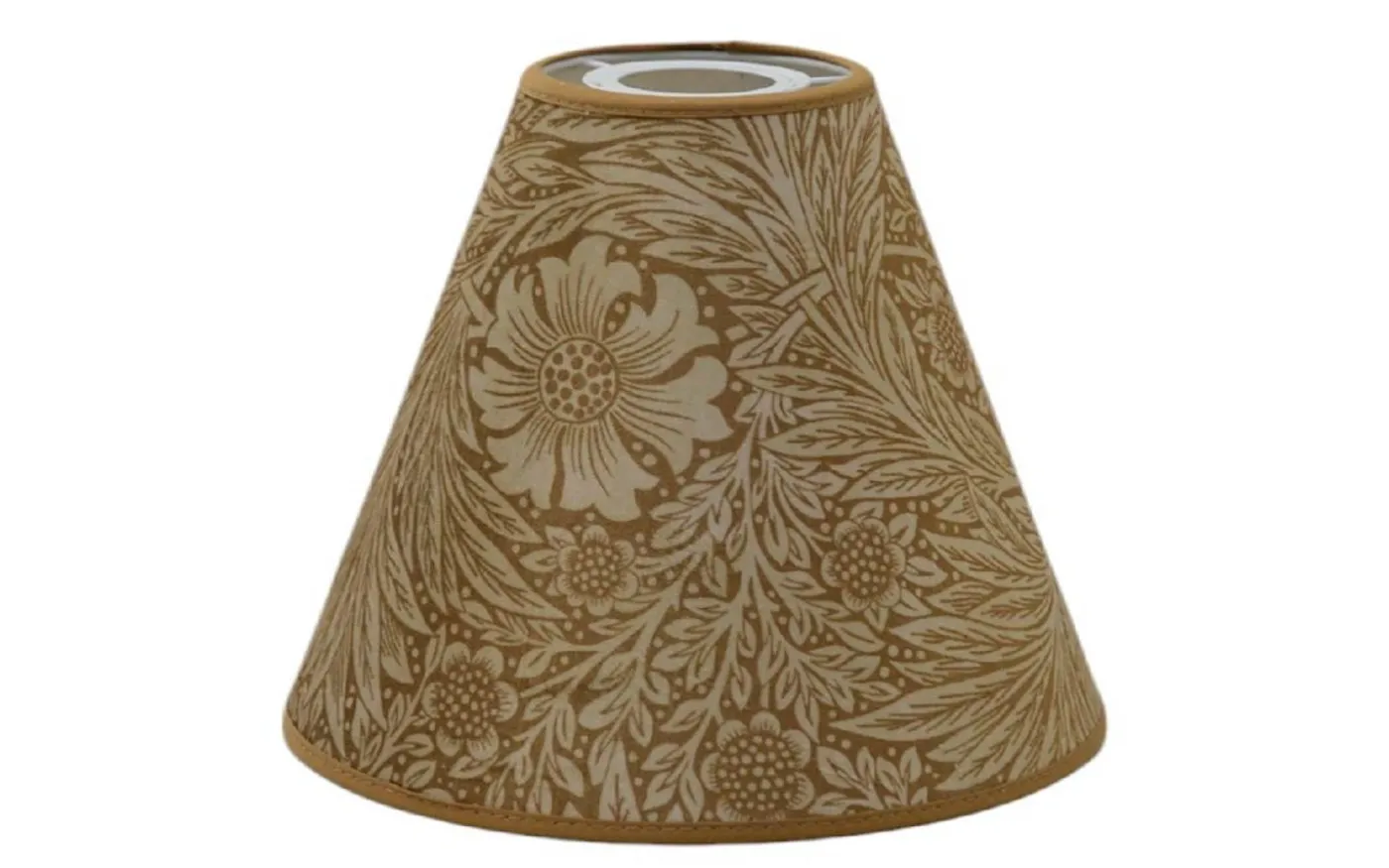 Marigold Velvet lampskärm från välkända Hallbergs Lighting of Sweden är en handsydd toppringskärm i ett vackert mönstrat tyg från William Morris.