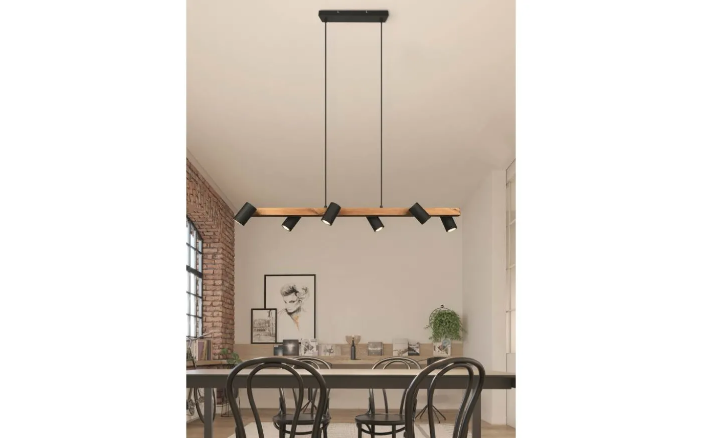 MARLEY-pendellampan är inte bara praktisk i form och funktion, utan framför allt en sak: helt enkelt vacker! Lampan har en diskret design och imponerar med sitt högkvalitativa hantverk. Oavsett om den är i köket eller i vardagsrummet: MARLEY-lampan med sex lampor är mångsidig och kan enkelt kombineras med olika inredningsstilar. Pendellampan är designad i mattsvart och trä och kan därför elegant komplettera och fullända moderna färgkoncept. För modern och pålitlig belysning rekommenderas en LED-lampa. Den erbjuder hög ljuskvalitet, är mångsidig och övertygar med en jämn belysning. Dess långa livslängd och låga värmeutveckling gör den till det perfekta valet för en mängd olika användningsområden. Ljuskälla: exklusiv 6x GU10 · max. 35W. Extra information: Justerbar i höjd, Takmontering, IP20, Lampa(or) ingår ej