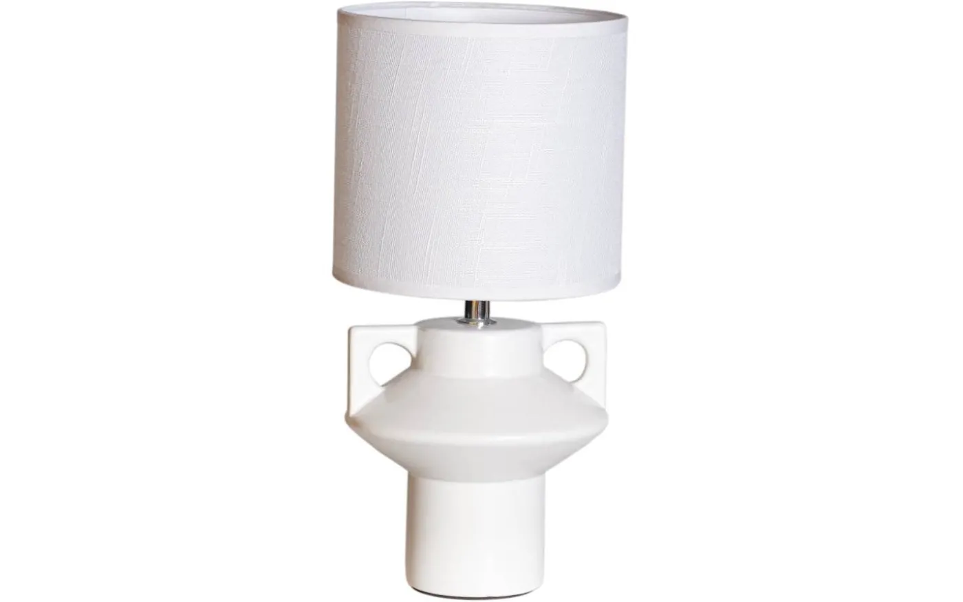 Mateo från Cottex är en bordslampa med lampfot i keramik och lampskärm i linne. Lampskärmen har en diameter på 17 cm.
