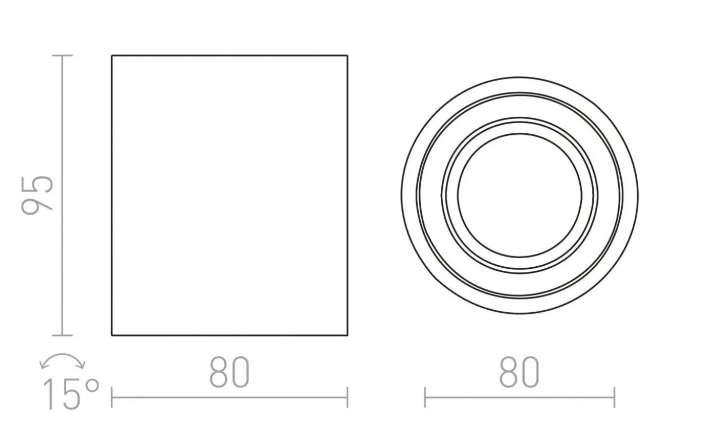 Cylinderformad ytmonterad riktbar spotlight med inbyggd LED. Drivdon ingår.