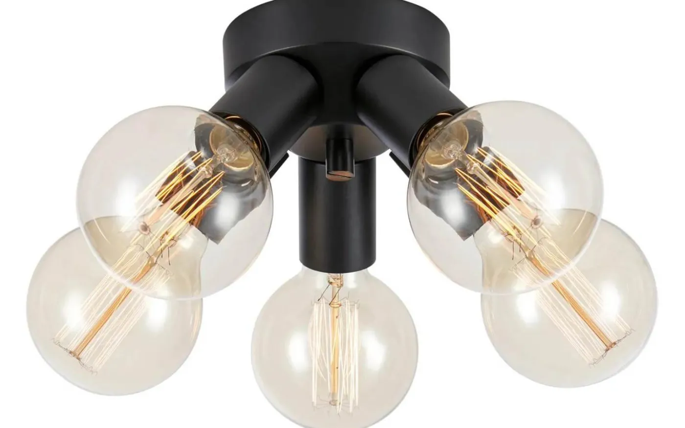 Mazzo plafond från Markslöjd är en plafond i svart metall med 5st fasta E27 socklar med plats för synliga ljuskällor. Komplettera med 5st dekorativ ljuskällor av globform för bästa resultat, se passande förslag under tillbehör.