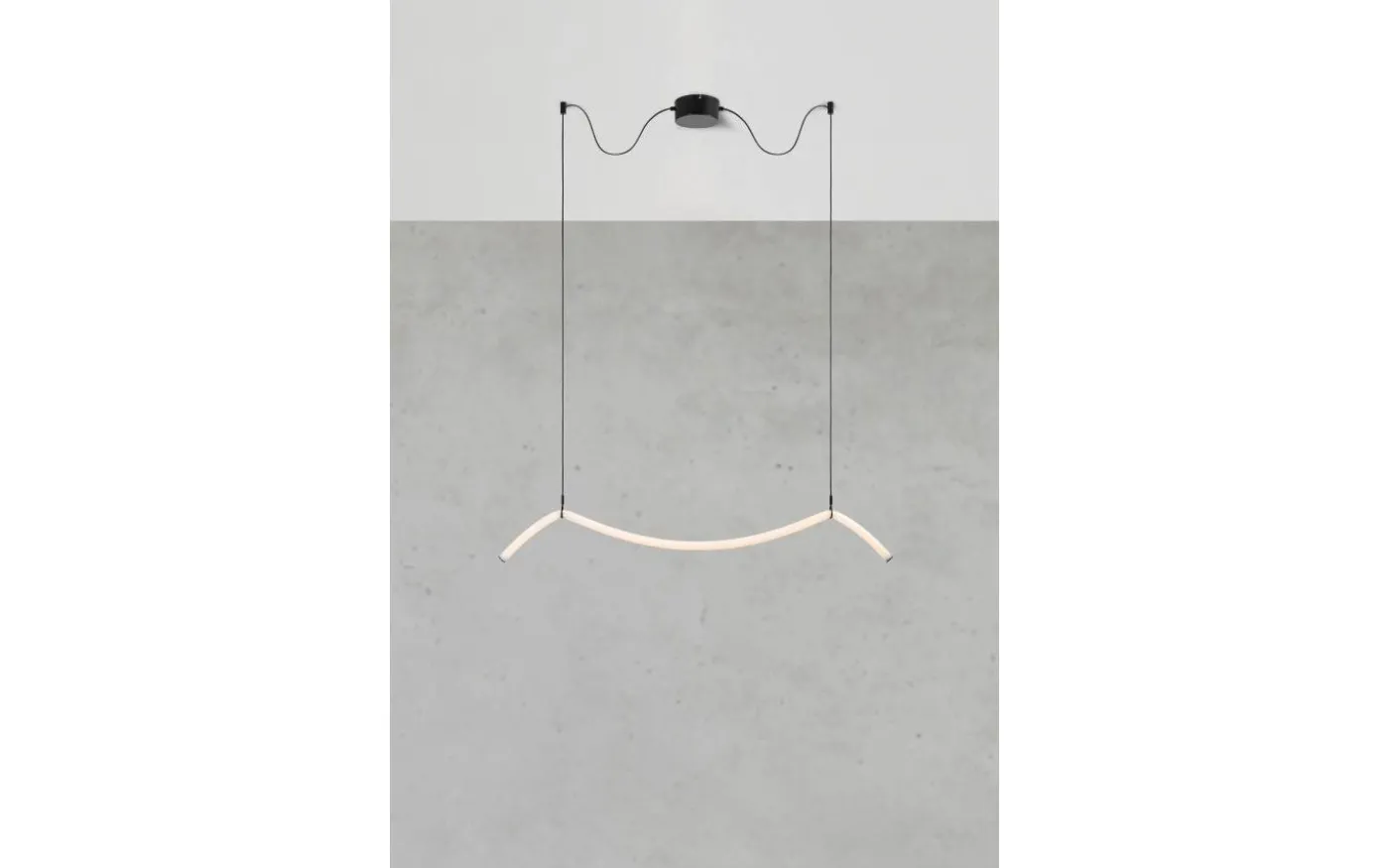 Melt taklampa från Markslöjd har en modern och minimalistisk design. Ljuskällan är integrerad i en elegant bågformad neonslinga som sprider ett mjukt, rundspridande ljus.