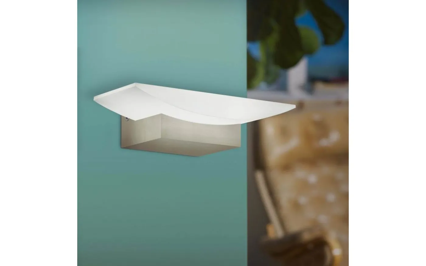 METRASS LED-vägglampan har en kropp i matt nickelmetall tillsammans med en vit satinplastskärm. De integrerade lysdioderna ger ett behagligt varmvitt ljus. Vägglampan smälter sömlöst med moderna trender och ger klassisk belysning för alla utrymmen, oavsett om det är i köket, vardagsrummet, sovrummet, hallen eller matsalen.