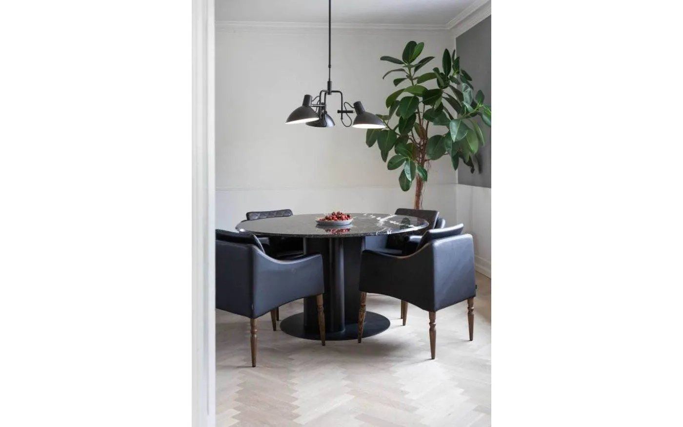 Metropole taklampa från danska varumärket Halo Design är designad av Michael Waltersdorff. Designen går i linje med retrostilen som här skapar en klassisk och tidlös taklampa som passar in i de allra flesta hem. Taklampan är tillverkad av metall i svart finish med 3st riktabara lampskärmar som har en vit insida som sprider ett jämt och fint ljussken när lampan är tänd.