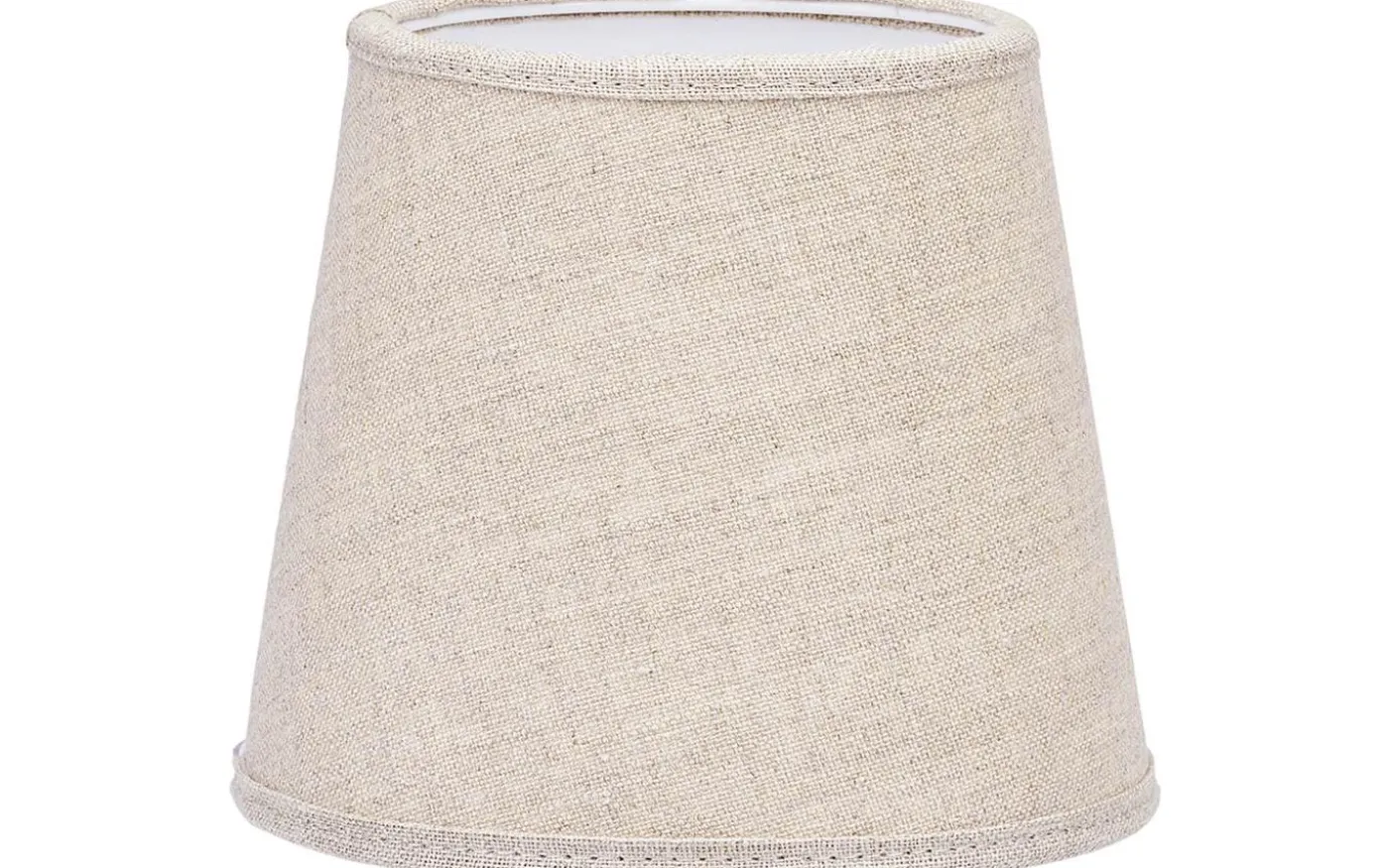 Mia lampskärm från PR Home är tillverkad i linnetyg och har ett klofäste som passar på en klotformad ljuskälla. Lampskärmen har en vit insida och kantband i ovan och underkant i samma tyg som skärmen.