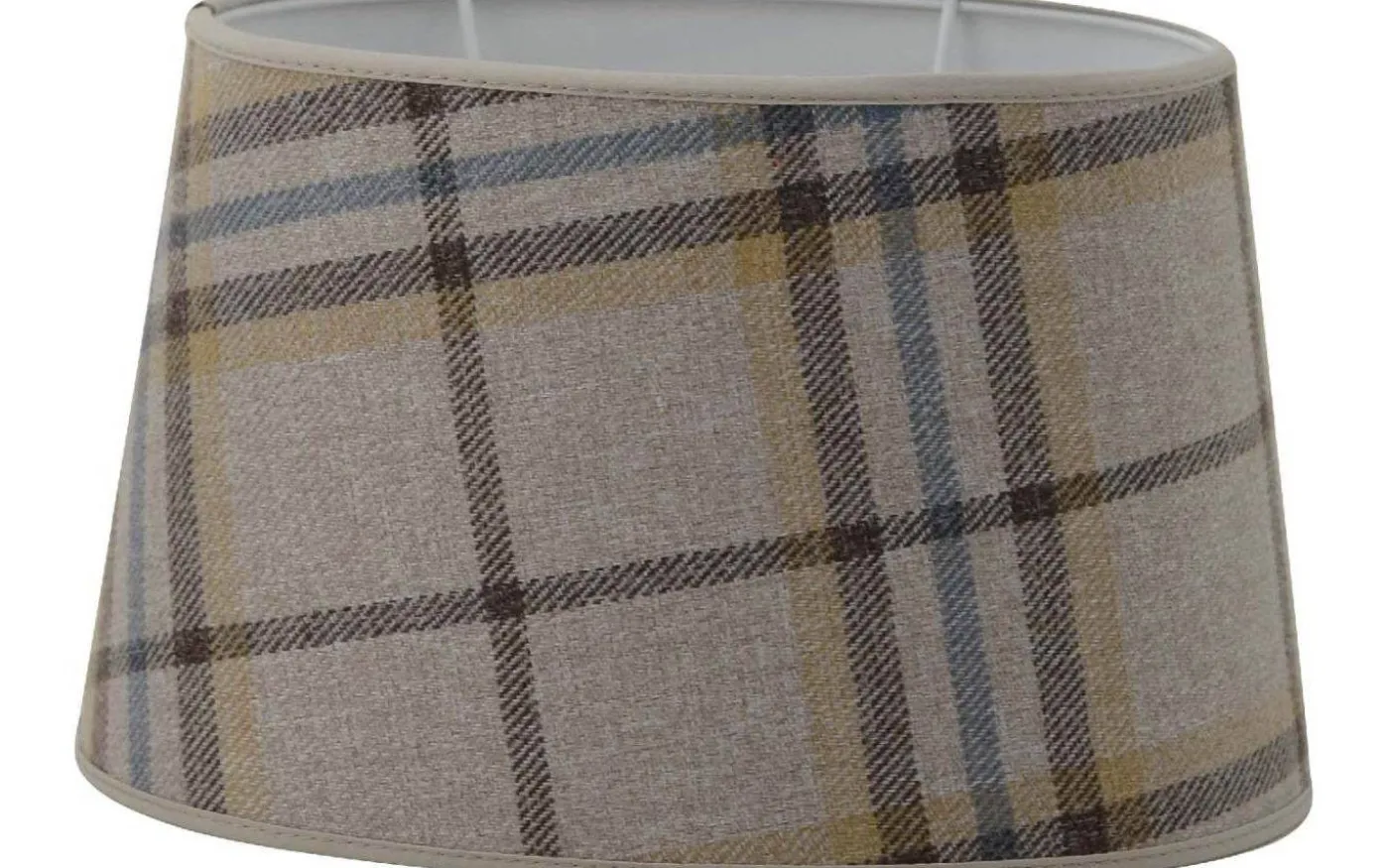 Middelton lampskärm från välkända Hallbergs Lighting of Sweden är en oval lampskärm med rutmönster och kantband i ovan- och nederkant.