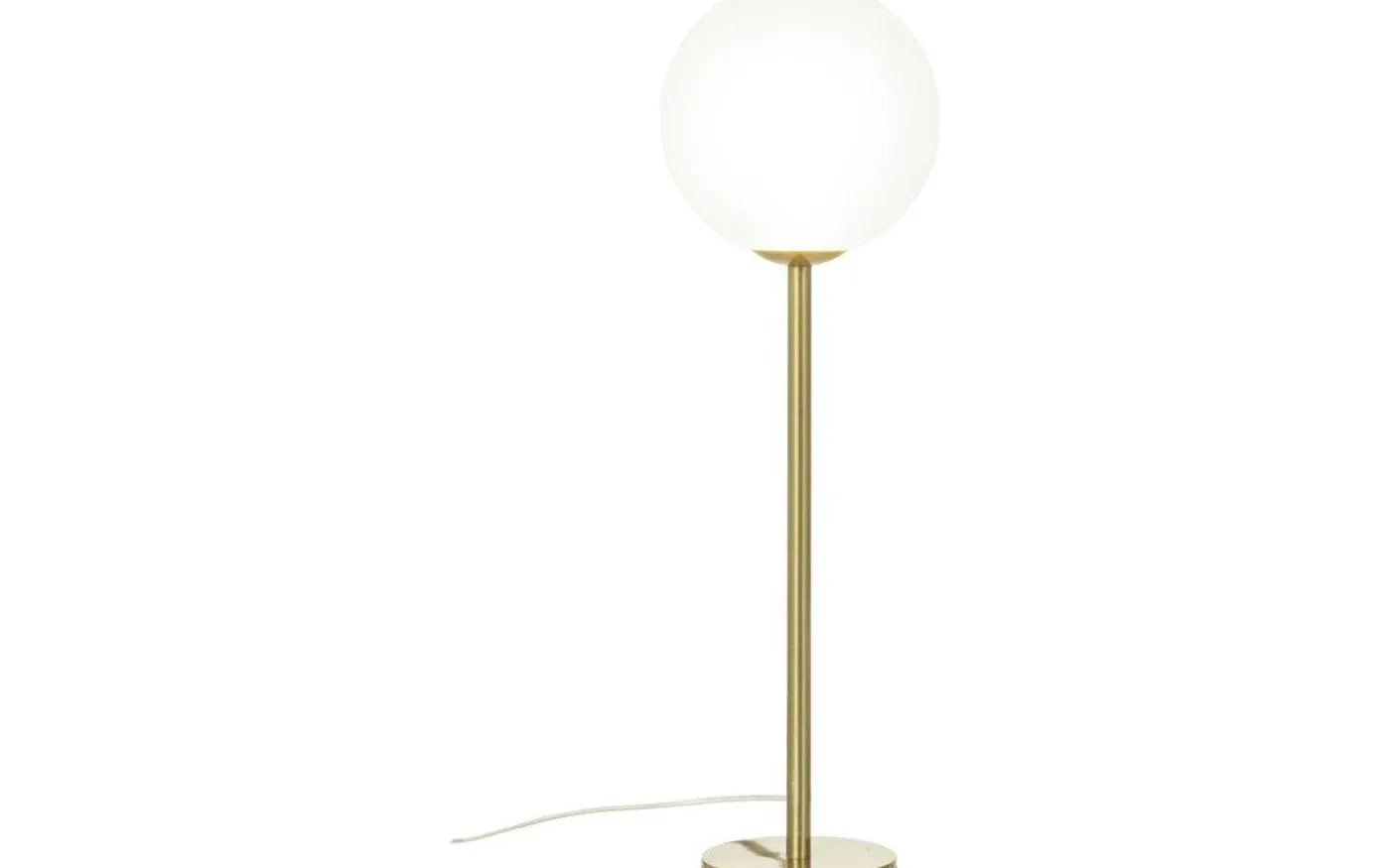 Molekyl bordslampa med lampfot i matt mässing och opalvit glaskupa. Max 25W G9, ingår ej. Sladd med mellanströmbrytare och stickpropp. Vacker lampa som med fördel kan kombineras med den lägre höjden i serien.