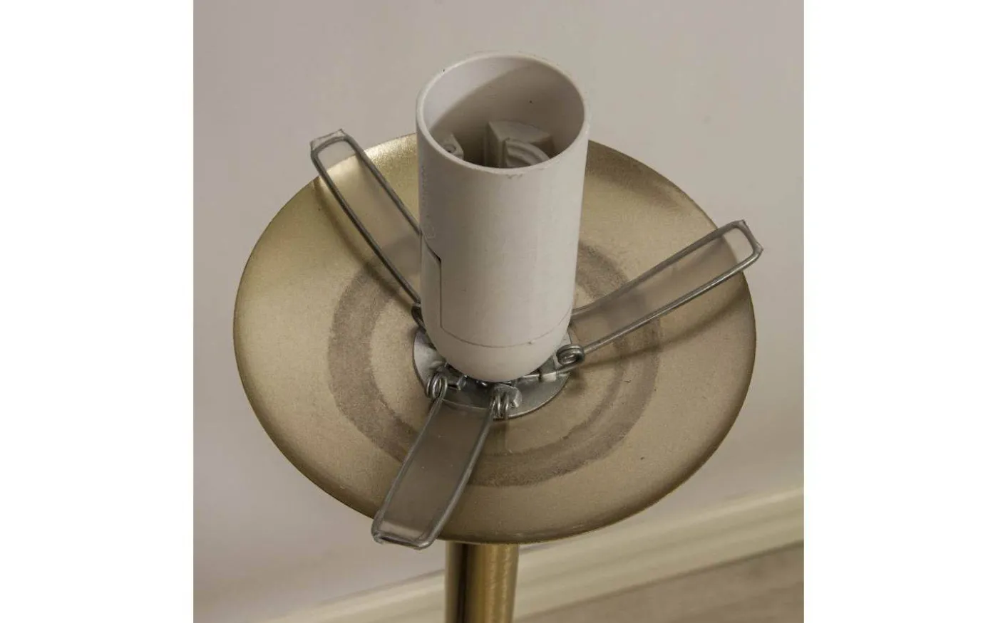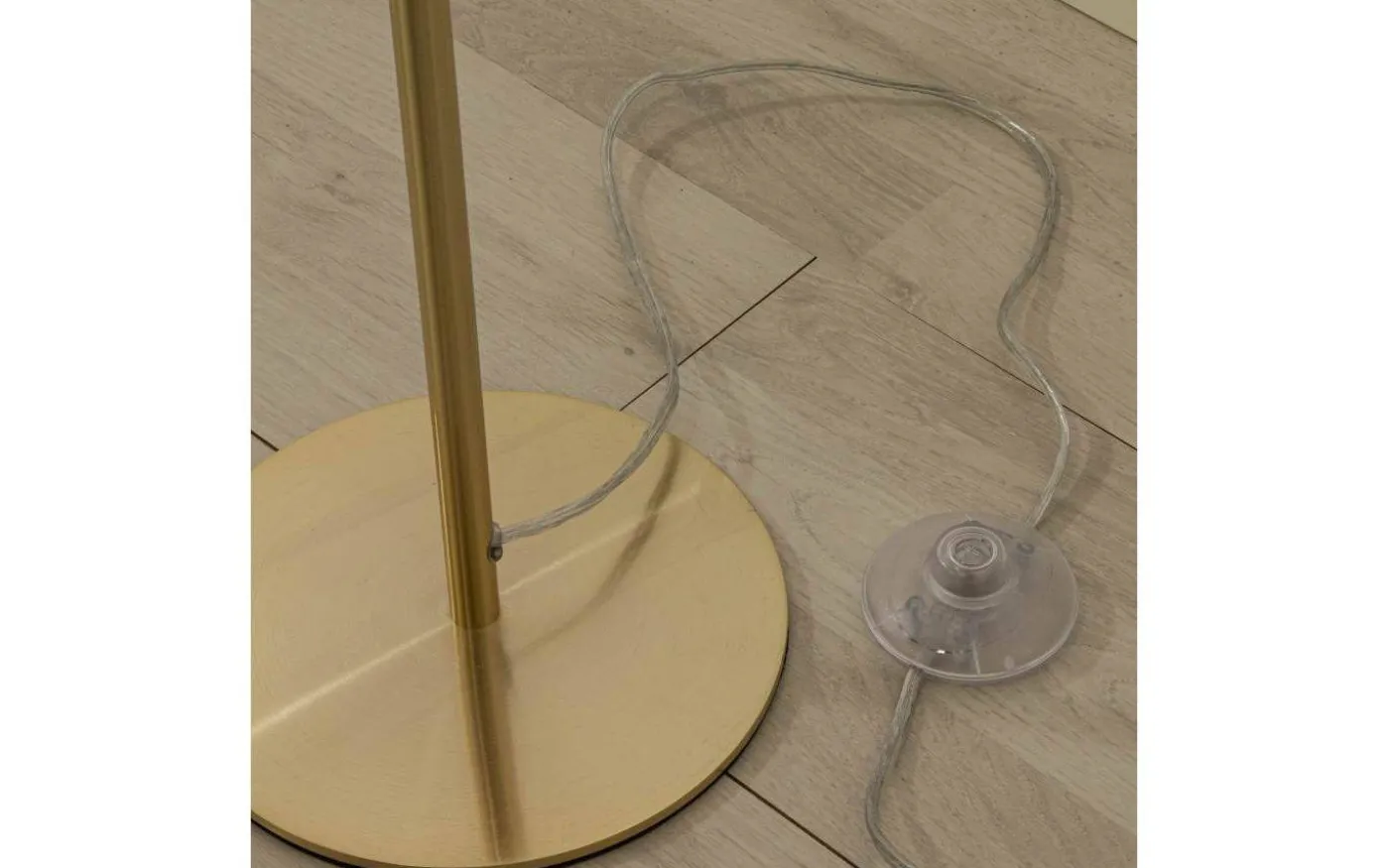 Molekyl golvlampa med lampfot i matt mässing och opalvit glaskupa. Lampan är 130 cm hög och har golvströmbrytare. Max 30W E14, ingår ej. En lättplacerd och modern golvlampa.