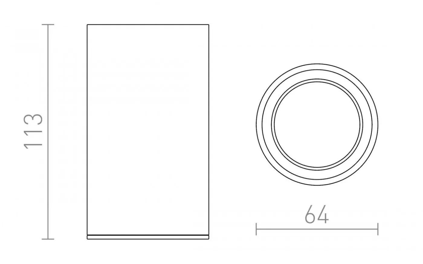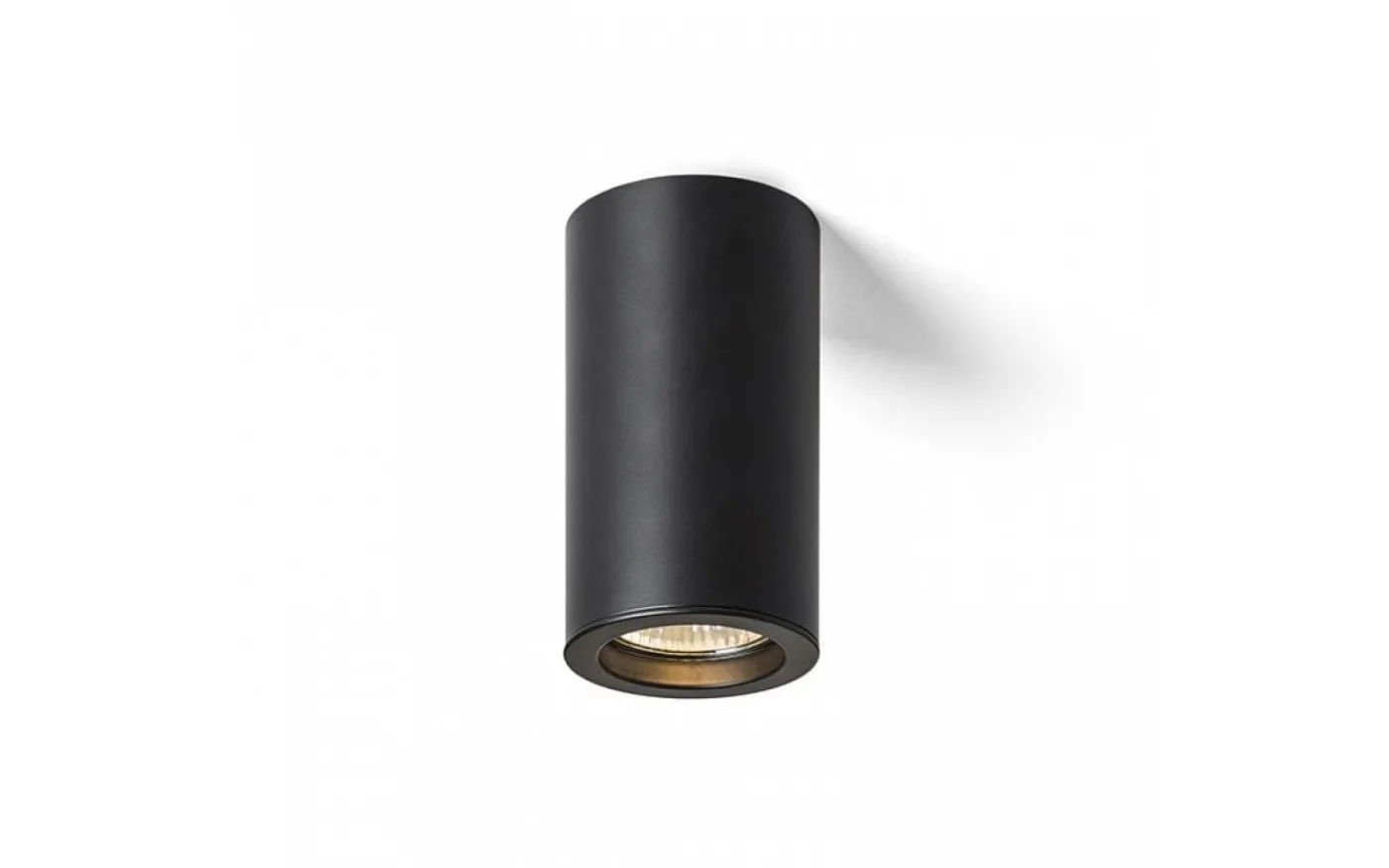 Cylinderformad taklampa för en fast halogenljuskälla. Denna armatur kan endast ta ljuskällor med en maxhöjd på 56 mm.