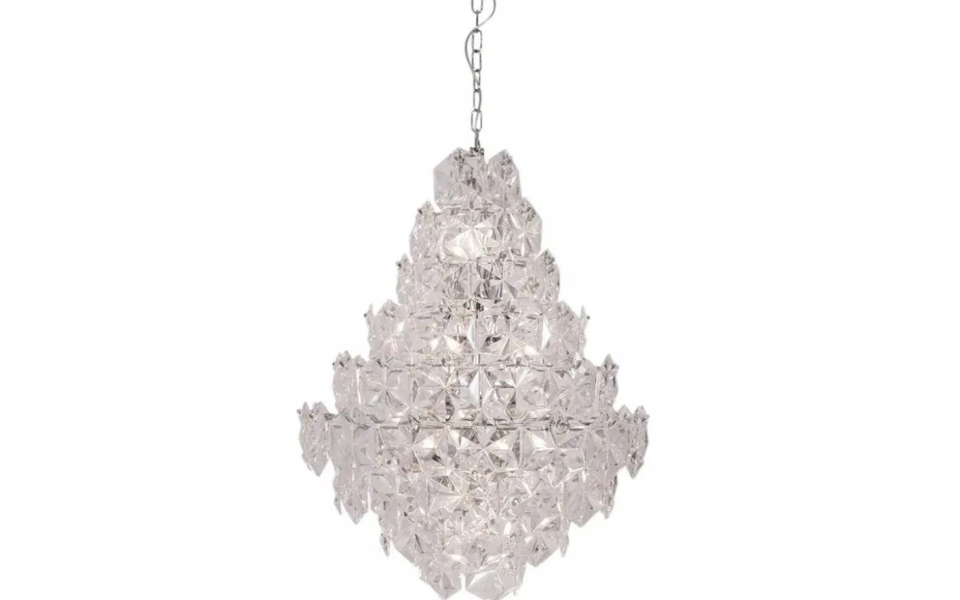 Stommen är gjord i blank, härlig krom kombinerat med stora, täckande prismor i slipad akryl. Placera Monarque Grande över ditt matbord eller förgyll vardagsrummet med denna vackra taklampa.