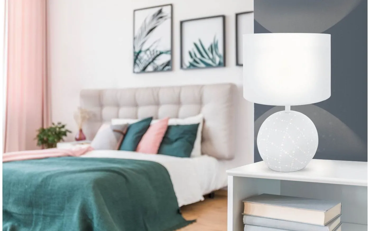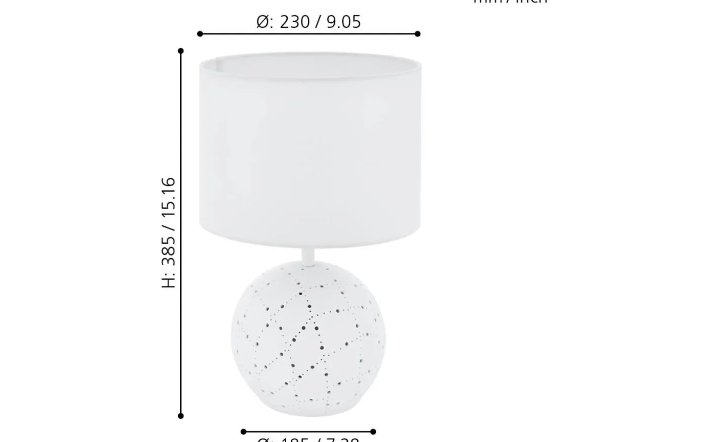 Denna bordsarmatur i MONTALBANO-serien är gjord av keramik och textil i vit färg och kommer med en vippbrytare. Armaturen är gjord för att lysa genom att sätta in en E27 och E14 ljuskälla.