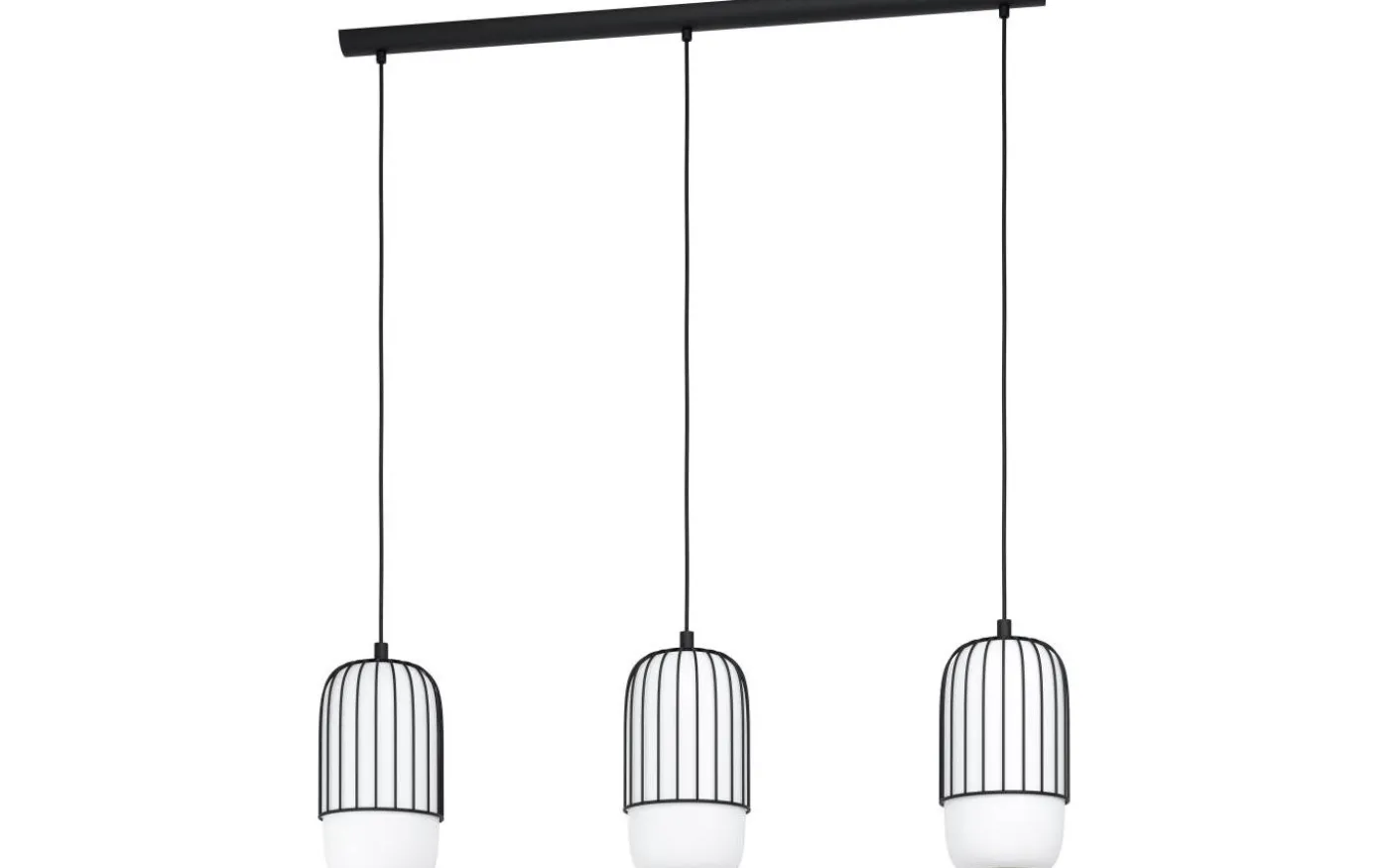 MULEGES taklampa har ett takfäste i svart metall och tre lampskärmar av svart tråd som var och en omger en mattvit opalglaskropp. De opala glaskropparna lyser mjukt och jämnt och skapar ett fascinerande spel av ljus och skugga genom de omgivande trådskalen. Den klassiska taklampan smälter in sömlöst med interiörer och ger distinkt belysning för alla utrymmen, oavsett om det är i vardagsrummet eller över ett långbord i matsalen.