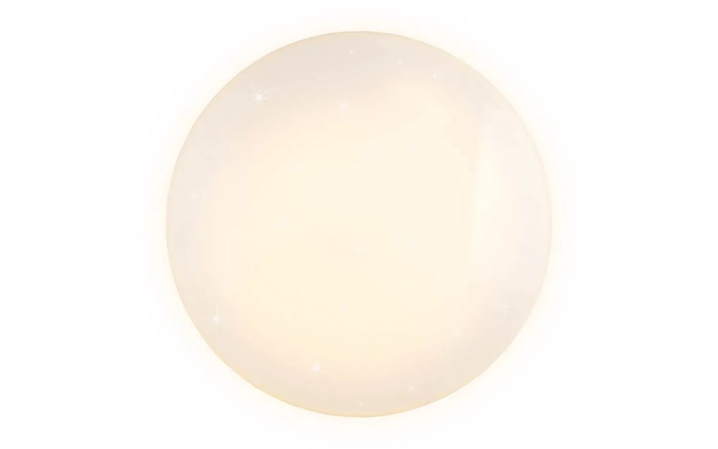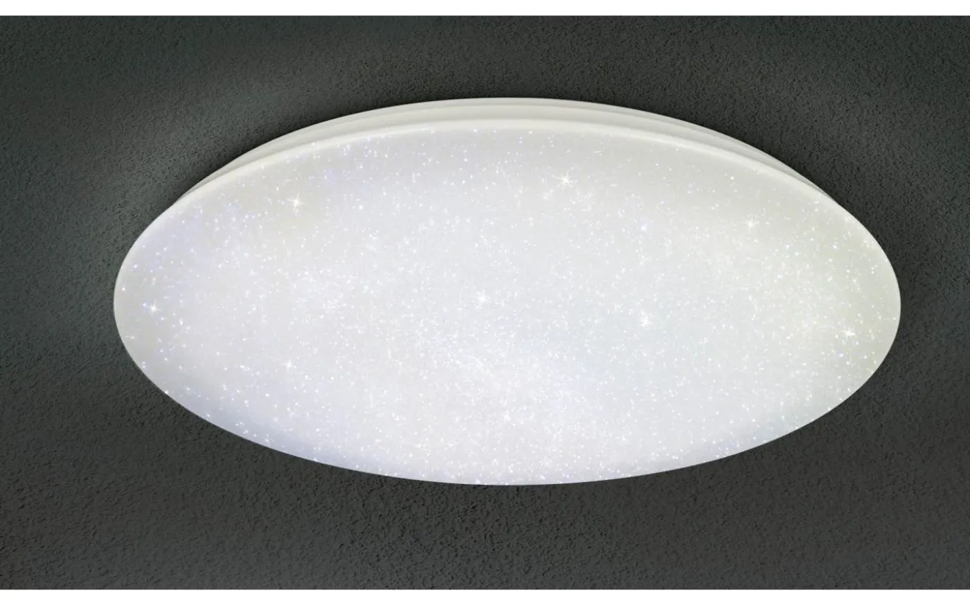 Modern och funktionell – LED-taklampan NAGANO. Armaturen med sitt trendiga stjärnljusskydd har ett runt utseende och är en riktig allrounder, så att rätt ljus kan skapas beroende på stämning. NAGANO kan dimras och ljusfärgen justeras steglöst med fjärrkontrollen för att skapa rätt ljusatmosfär i rummet. Armaturen har också en nattljusfunktion, som vid behov även kan styras via fjärrkontrollen. Tack vare den inbyggda minnesfunktionen ställs det senast inställda ljusscenariot med fjärrkontrollen in så snart ljuset släcks och tänds igen med väggströmbrytaren. Med en diameter på 79 cm är lampan en riktig blickfångare. NAGANO kan tack vare sitt enkla utseende enkelt integreras i en modern inredningsstil. Dessutom har armaturerna modern LED-teknik, vilket står för hög ljuskvalitet. LED-ljuskällor kännetecknas av lång livslängd och låg värmeutveckling. Ljuskälla: inklusive 1x SMD LED, 72W · 1x 8500lm, 3000 – 5500K. Extra information: Takmontering, Integrerad dimmer, IP20, Steglöst justerbar ljusfärg, Minnesfunktion, Nattlampa, Ej lämplig för extern dimmer, Fjärrkontroll, Stjärnljuseffekt