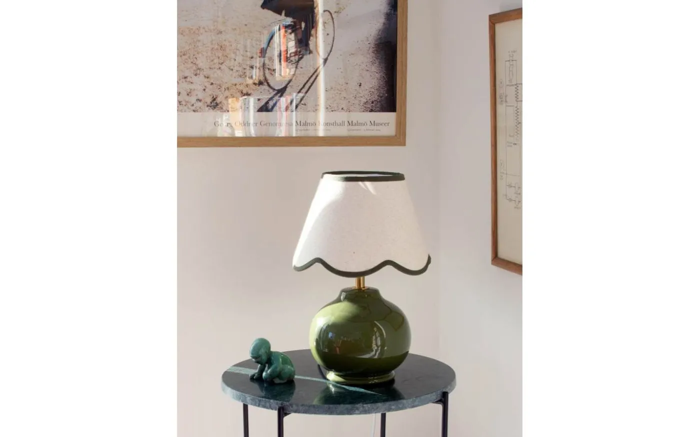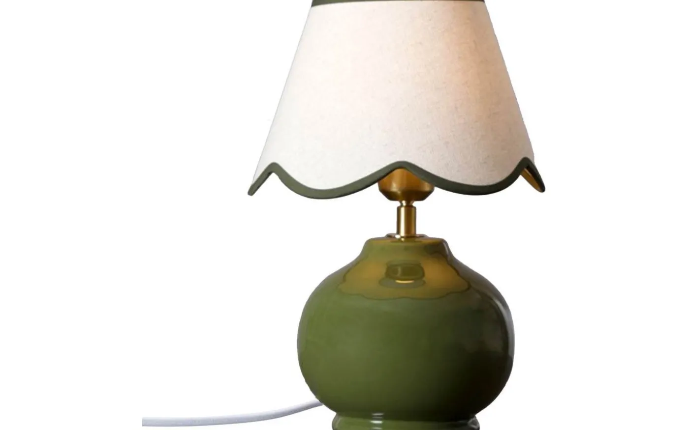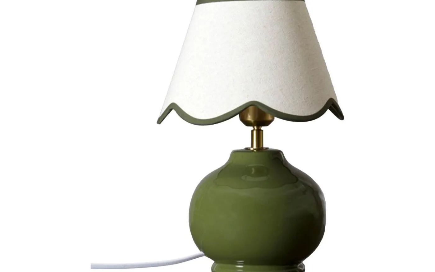 Nell från PR Home är en vacker bordslampa med klotformad keramikfot och en härlig linneliknande lampskärm med vågig nederkant och matchande kantband i ovan-/ och underkant. Ljuskälla köpes separat, se passande förslag under tillbehör.