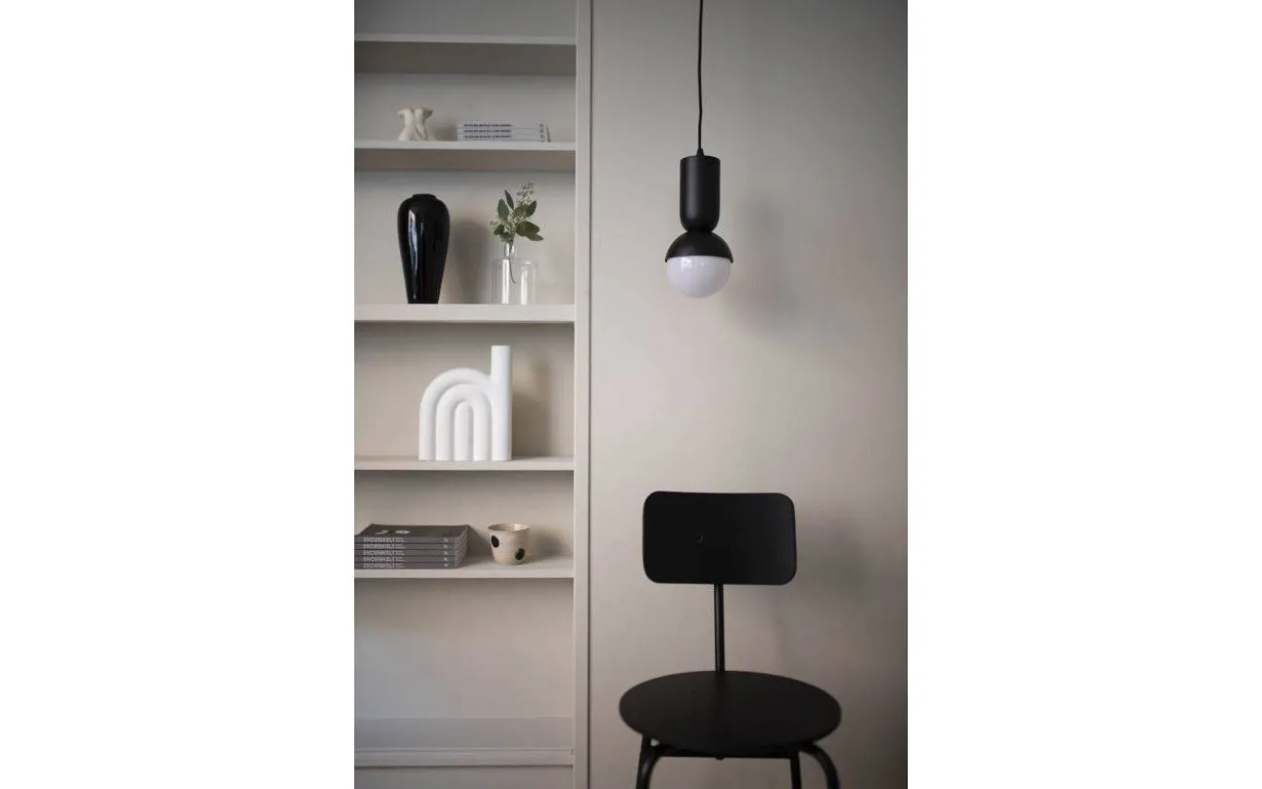 Nero fönsterlampa från Globen Lighting är en nätt minipendel med ett starkt grafiskt uttryck, designad av Joakim Thedin. Fönsterlampan är tillverkad i svart mattlackad metall. Lampan passar utmärkt att hänga flera på rad över köksön, baren eller ensam i ett fönster. På produktbilderna är denna fönsterlampa kombinerad med en globformad opalvit 125mm E27 ljuskälla, denna medföljer ej, se passande förslag under ”Tillbehör”.