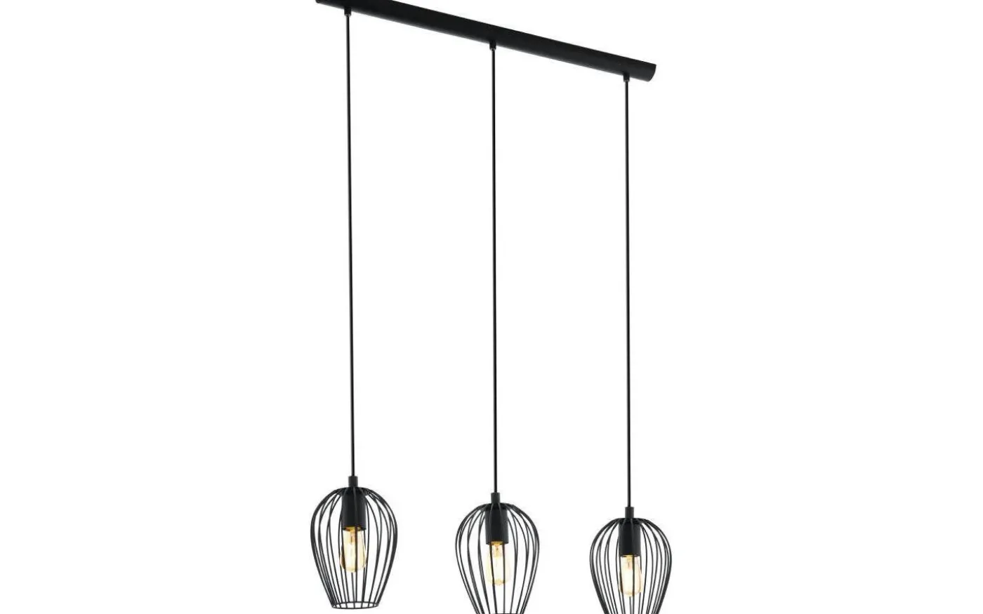 Newtown taklampa från Eglo är en avlång taklampa med tre nedpendlade lampskärmar i svart stål. Observera att denna produkt skruvas upp och har en fast anslutning, den går ej att montera på en takkrok.