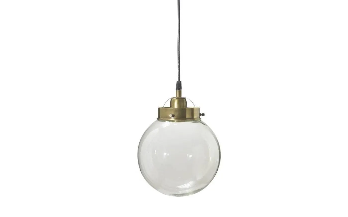 Fina Normandy från PR HOME är en vacker taklampa med kupa i klarglas och fina detaljer i silver- eller mässingsfärgad metall.