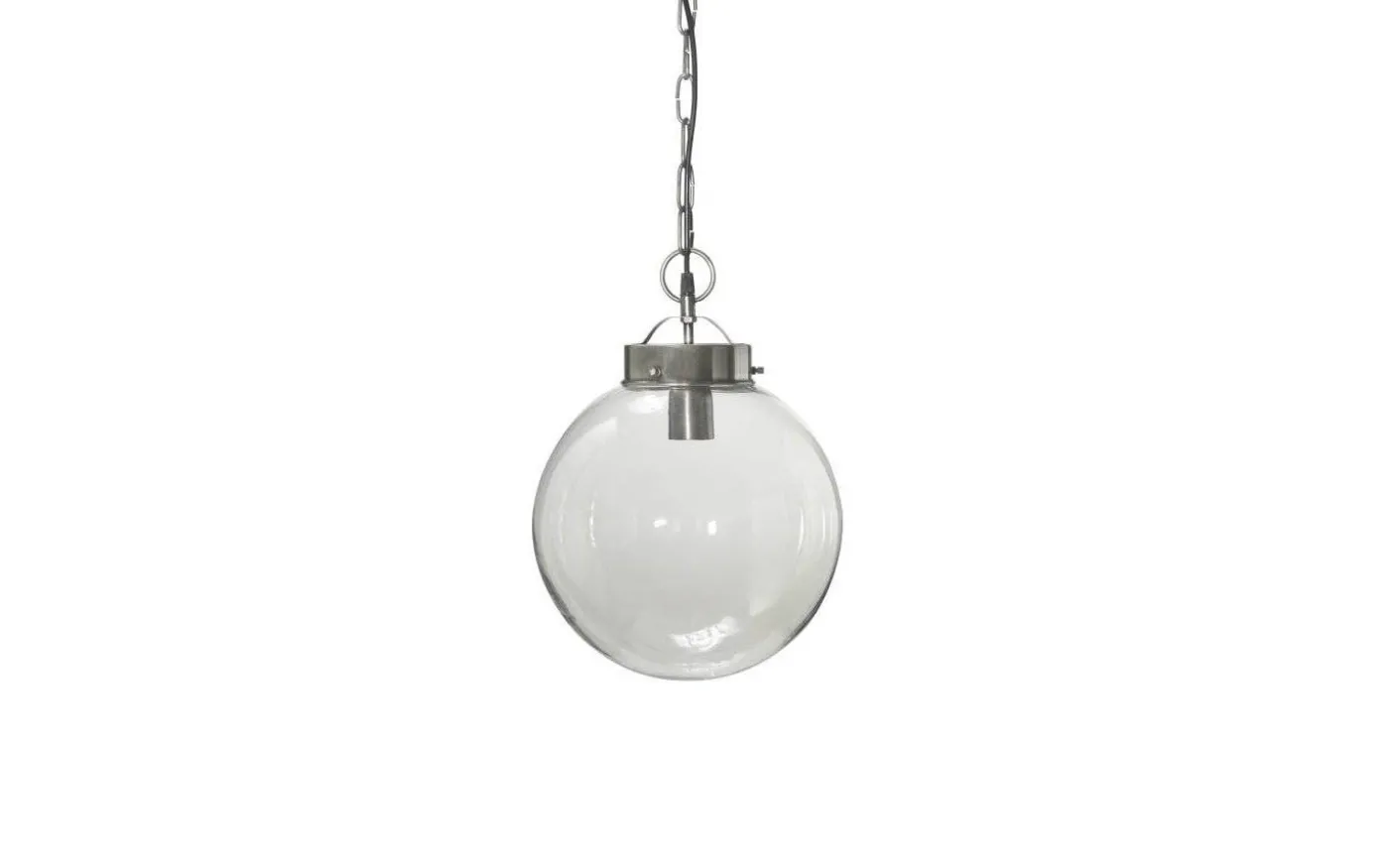 Fina Normandy från PR HOME är en vacker taklampa med kupa i klarglas och fina detaljer i silver- eller mässingsfärgad metall.