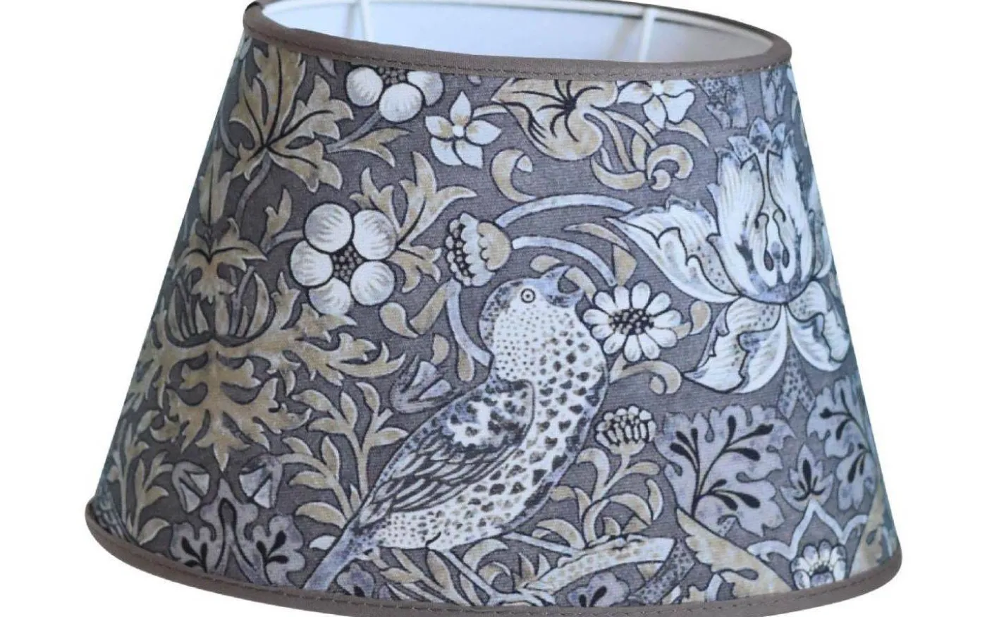 Nutcracker lampskärm från välkända Hallbergs Lighting of Sweden är en vacker oval lampskärm i mönstrad textil med kantband i ovan- och nederkant.
