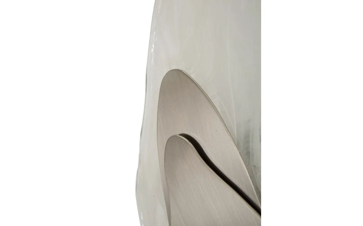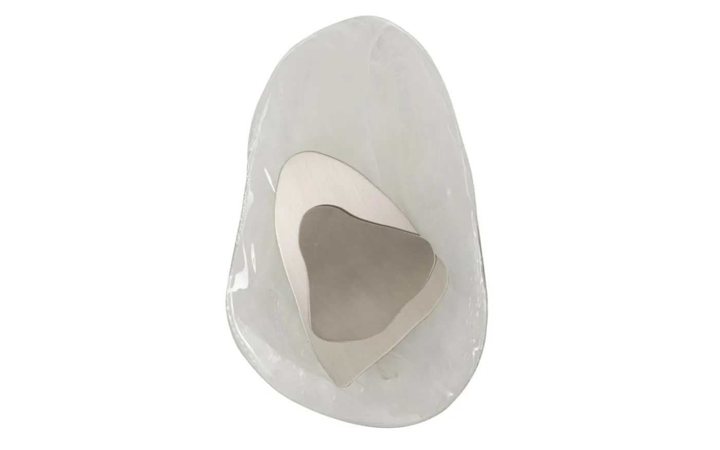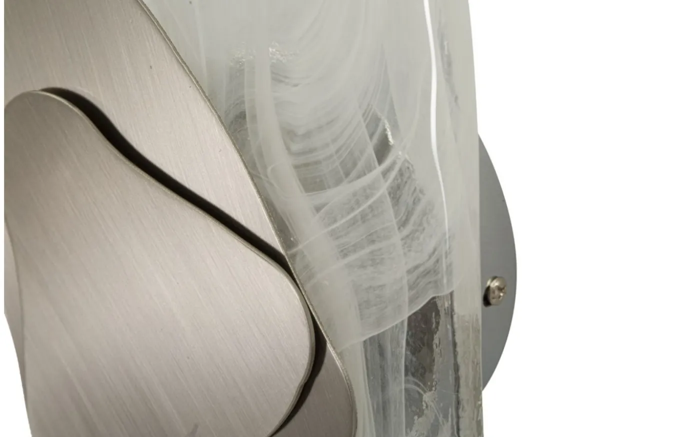 Vägglampa med ljusspets i silvermetall och glas med oregelbunden form och dekorationer som påminner om ett rökmoln.