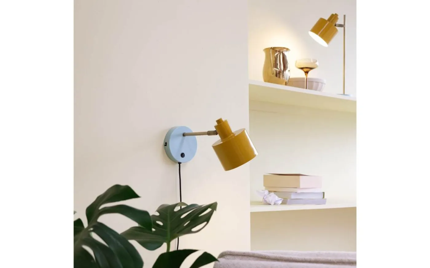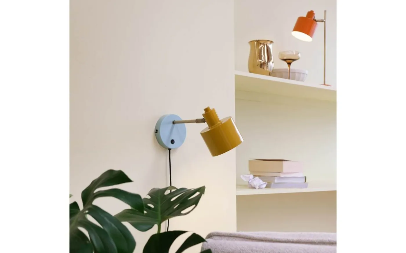 Vägglampa i modern design, där avståndet mellan vägg och skärm ger många användningsmöjligheter.