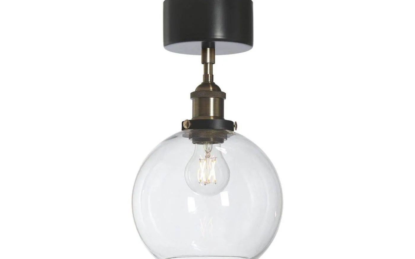 Omega plafond från välkända PR Home är av klassisk design med metallchassi i mattsvart och mässing som kombineras med ett handgjort klarglas. Då glaset är handgjort kan det förekomma enstaka luftbubblor i glaset och även en viss ojämnhet i glastjocklek över glasytan.