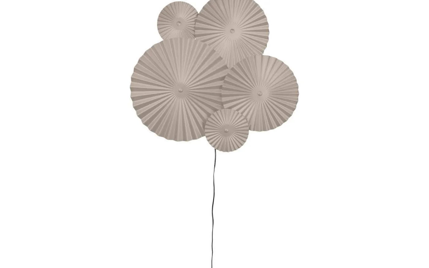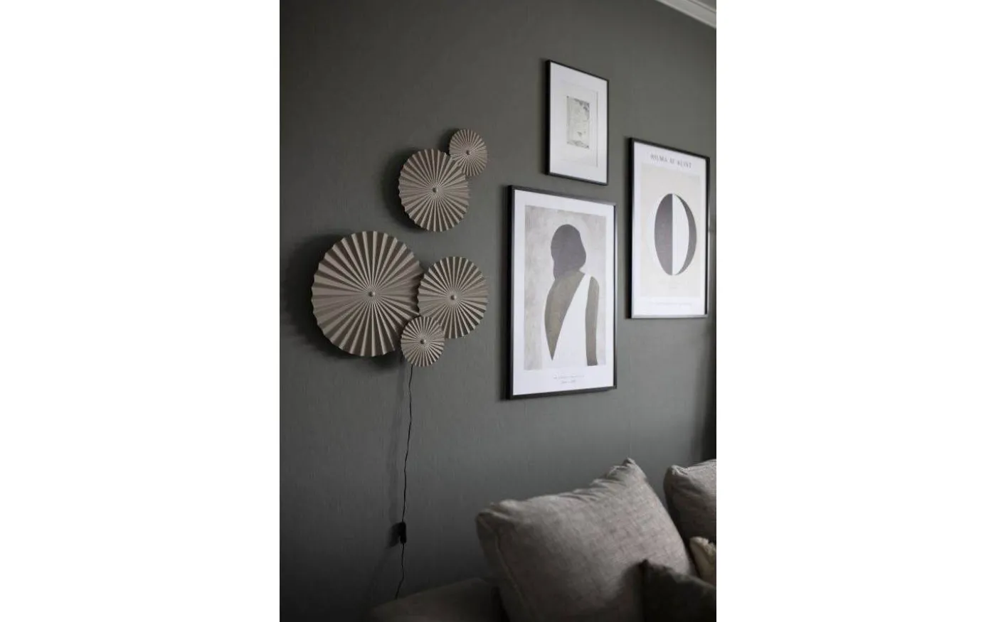 Omega vägglampa från Globen Lighting är en modern vägglampa som blir som en vacker skulptur på väggen. Vägglampan är tvådelad med en del om tre sammanhängande plattor och en del om två sammanhängande plattor som du kan placera där du önskar. Vägglampan är tillverkad av veckad metall i beigefärgad finish och har en integrerad (inbyggd) LED-list på baksidan.
