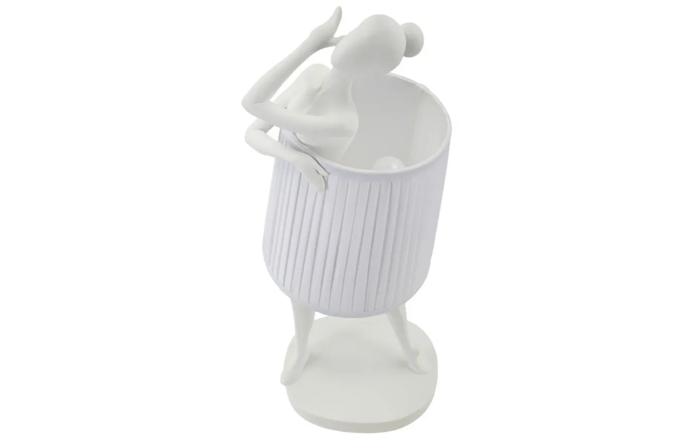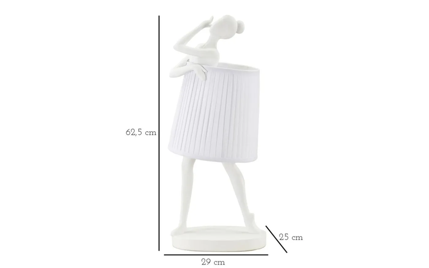 Bordslampa i harts i form av en dansare. Komplett med lampskärm i vit tyg.