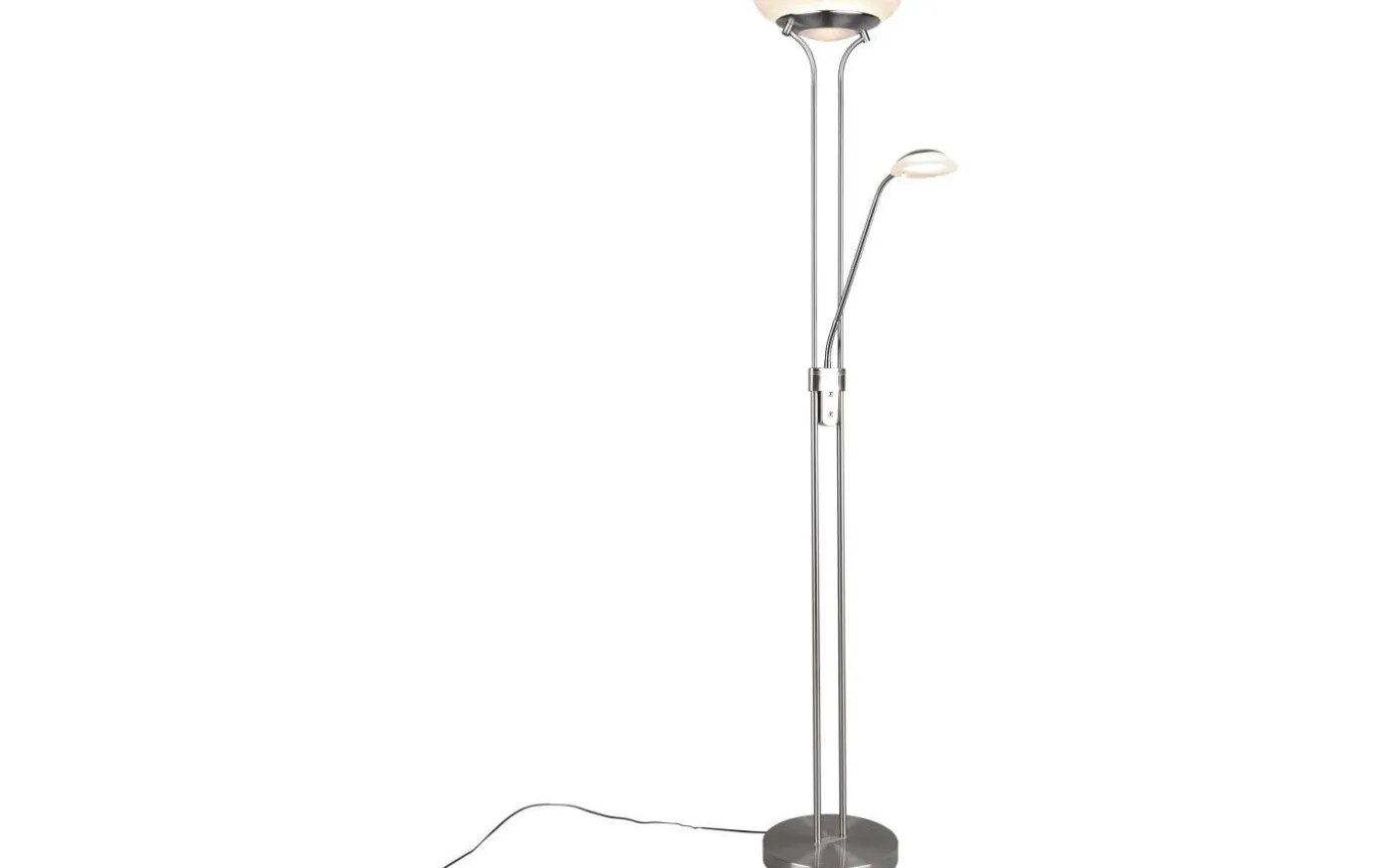 Golvlampan ORSON imponerar med sin tidlösa design och erbjuder många användnings- och designmöjligheter. Helst bör armaturen placeras bredvid en soffa eller fåtölj, eftersom en flexibel läsarm säkerställer bästa möjliga ljusresultat utöver uppljuset som huvudsaklig ljuskälla. Denna kan justeras för att säkerställa att önskat ljusfall kan väljas fritt. Takwasher och läsarm kan ställas in separat och är steglöst dimbara. Tack vare den inbyggda minnesfunktionen börjar ljuset med den senast valda ljusinställningen. Tack vare den klassiska färgdesignen i matt nickel och det alabasterfärgade glaset kan ljuset kombineras med många inredningsstilar. Dessutom har armaturerna modern LED-teknik, vilket står för hög ljuskvalitet. LED-ljuskällor kännetecknas av lång livslängd och låg värmeutveckling. Ljuskälla: inklusive 1x SMD, 28W · 1x 3200lm, 3000K. Ljuskälla: 2 inklusive 1x SMD, 6W · 1x 600lm, 3000K. Extra information: Integrerad dimmer, IP20, Minnesfunktion, Sensordimmer, Separat omkopplingsbar