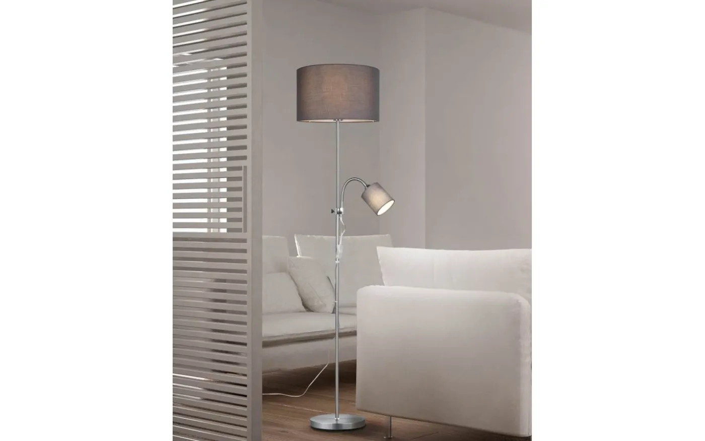 Den praktiska golvlampan OWEN erbjuder många användningsmöjligheter och kan kombineras på en mängd olika sätt tack vare sin klassiska design. Tack vare tygskärmarna avger armaturen ett mjukt och behagligt ljus som ger en mysig känsla i ditt vardagsrum. Förutom den huvudsakliga ljuskällan säkerställer den flexibla och höjdjusterbara läsarmen bästa möjliga ljusresultat. Denna kan justeras specifikt så att önskat ljusfall kan väljas fritt. Placerad bredvid soffan eller i läshörnan inbjuder lampan dig att koppla av och dröja kvar. Båda ljuskällorna kan slås på separat för optimala ljusresultat. De grå lampskärmarna kombineras med en lampsockel i matt nickel för ett elegant utseende. För energibesparande belysning rekommenderas att använda en LED-lampa. Dessa är ett optimalt alternativ till konventionella halogenlampor och står för hög ljuskvalitet och energibesparingar på upp till 80 %. Dessutom hjälper LED-lampor dig att dra nytta av lång livslängd, låg värmeutveckling och samtidigt skydda miljön. Ljuskälla: exklusiv 1x E27 · max. 42W. Ljuskälla: 2 exklusiva 1x E14 · max. 10W. Extra information: Flexibel, IP20, Lampa(or) ingår ej, Separat omkopplingsbar, Strömbrytare