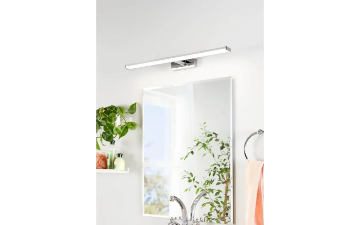 Spegellampan PANDELLA 1 LED har en kromfärgad aluminium och silverfärgad plastfinish. Den är lämplig för användning i badrummet på grund av dess IP44-skydd mot sprutvatten. De integrerade lysdioderna är gömda under det vita plasthöljet och ger ett starkt neutralt vitt ljus. Vägglampan är 60 cm lång och smälter sömlöst in i moderna interiörer och ger en snygg belysning i badrummet över spegeln.