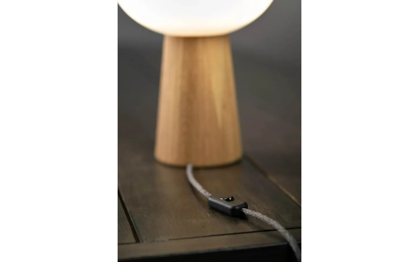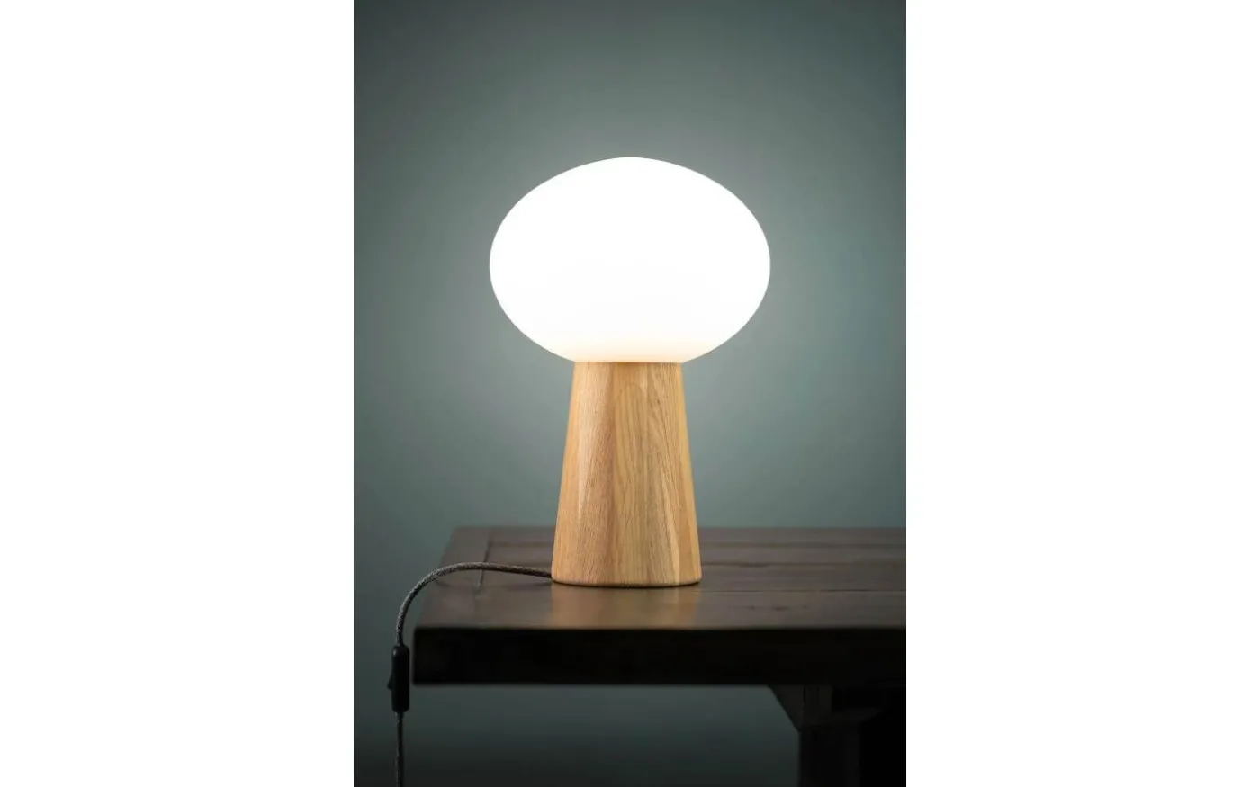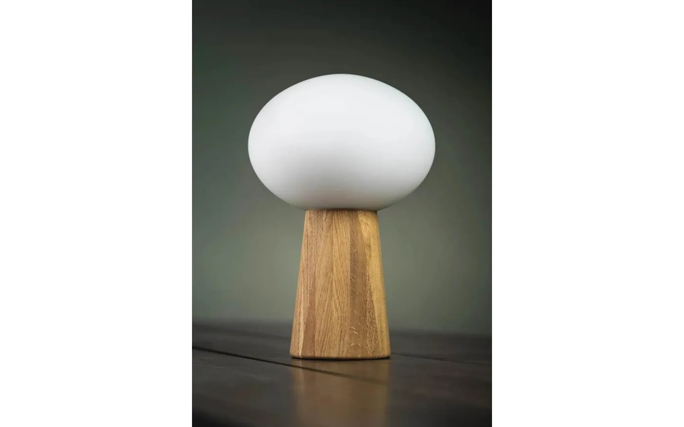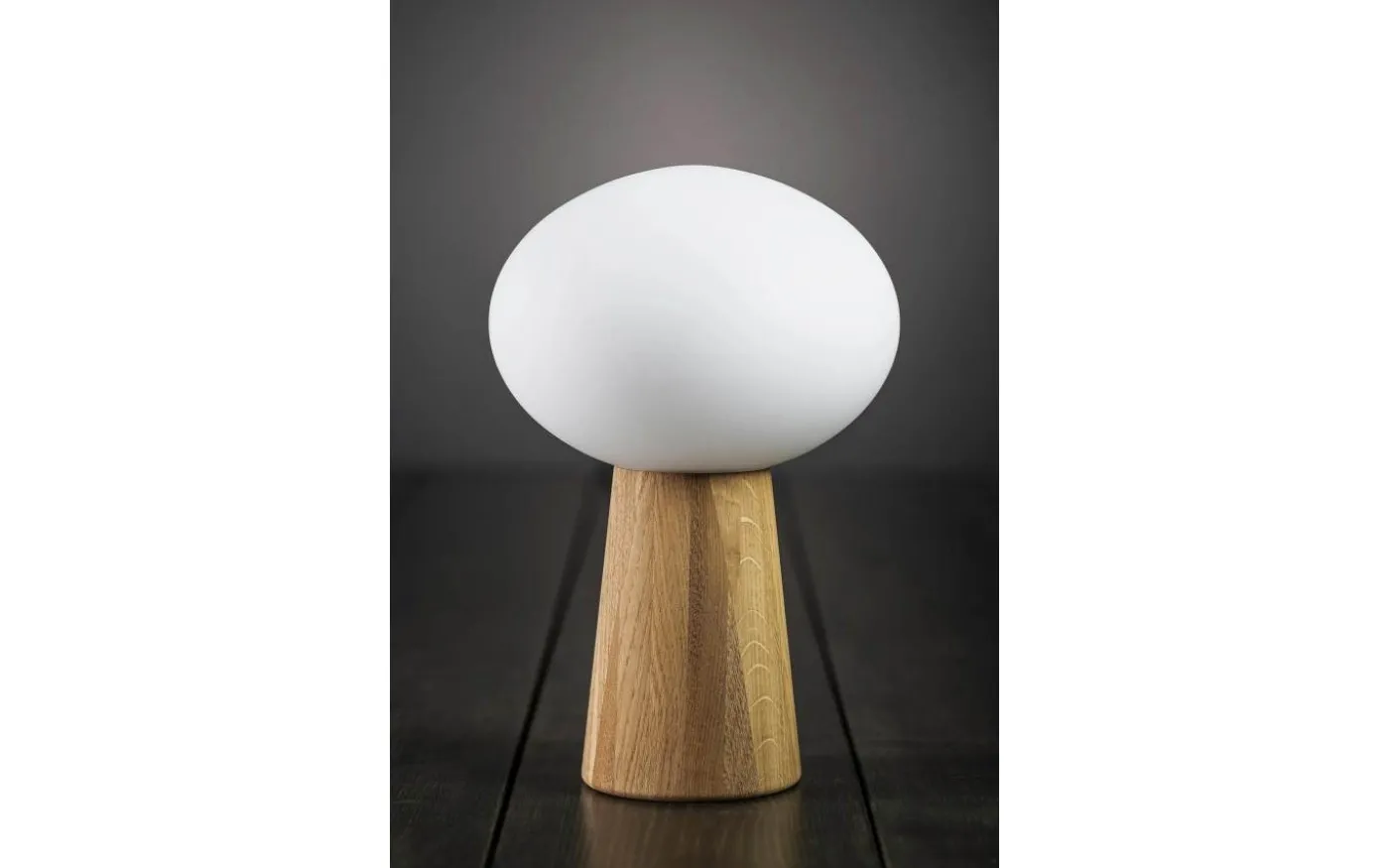 Oater bordslampa från Markslöjd är designad av Joakim Thedin. Lampfoten är i av ek kombinerad med en opal glaskupa.