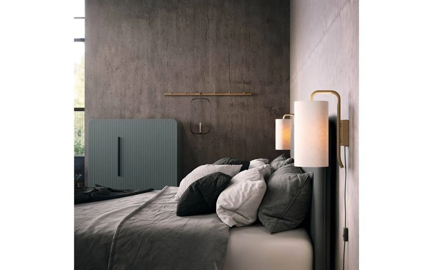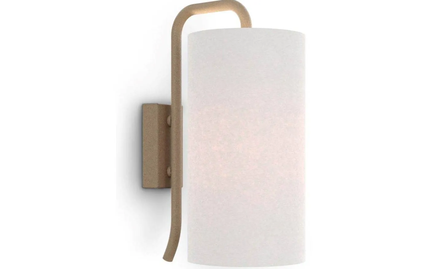 Pensile vägglampa är uppbyggd av bockade metallrör och är lackerad i en sandfärgad finish och kombineras med Pensile textilskärm, antingen i matchande eller avvikande kulör.