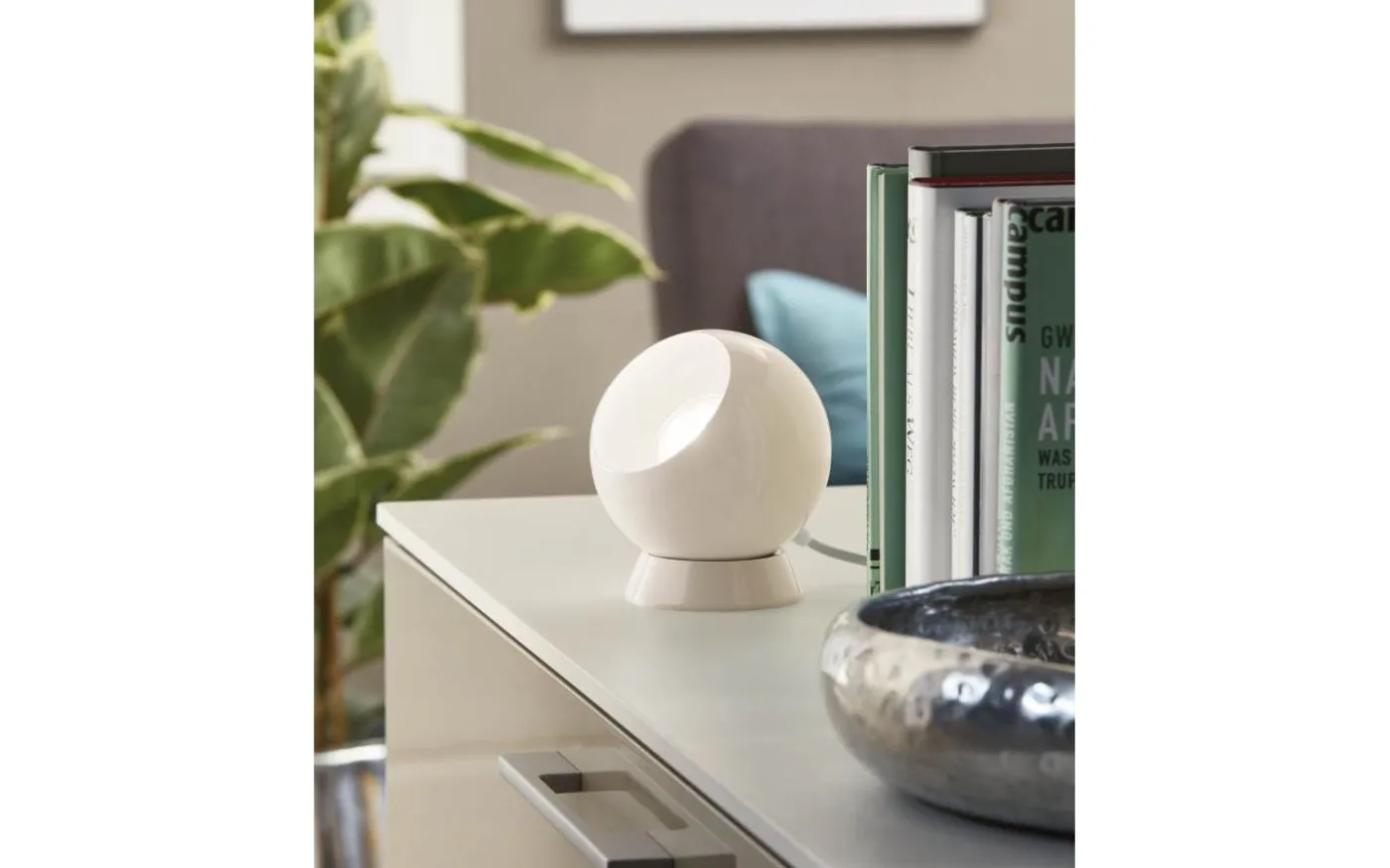 PETTO 1 LED-bordslampan har ett sfäriskt huvud av vit metall och en vit bas. Den runda utskärningen på huvudet ger en vy av glödlampan inuti. Den klassiska bordslampan smälter in i nästan alla moderna inredningstrender och tänds och släcks med sladdströmbrytaren. Den magnetiska basen gör att ljuset kan röra sig flexibelt så att ljussfären kan vara perfekt orienterad.