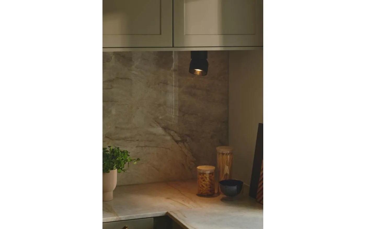 Pitcher har en mjuk, rundad design med ett dolt vippgångjärn som gör att du kan vrida ljuset i alla riktningar. Placera flera spotlights i en lång hall eller använd den för att framhäva vissa inredningsdetaljer.
