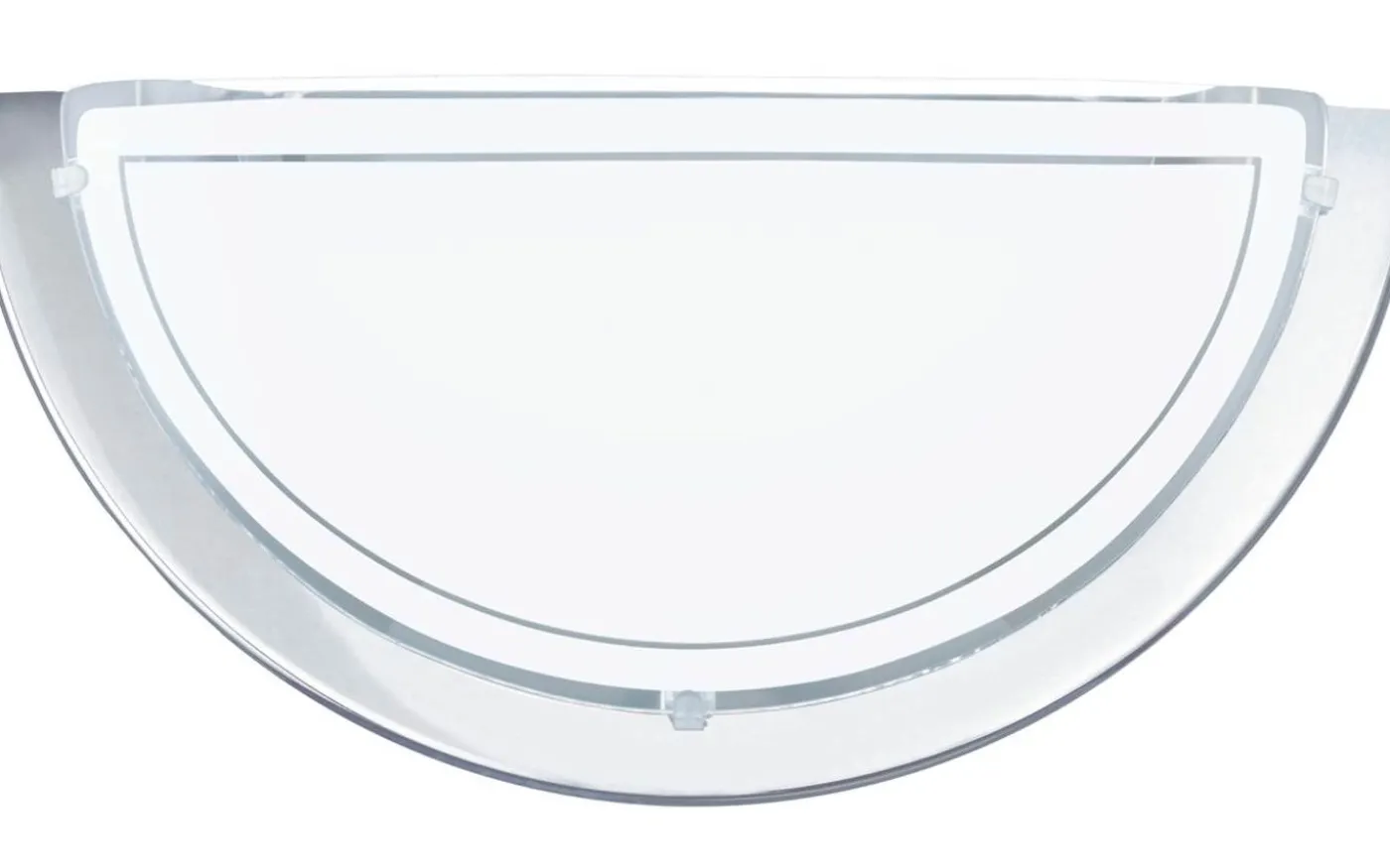 Denna väggarmatur från serien PLANET 1 är tillverkad av förkromat stål och klart och vitmålat satinerat glas.