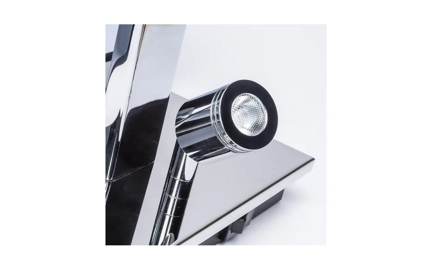 Båda vägglampans ljuskällor går att slås på och stängas av individuellt via en knapp på basen.