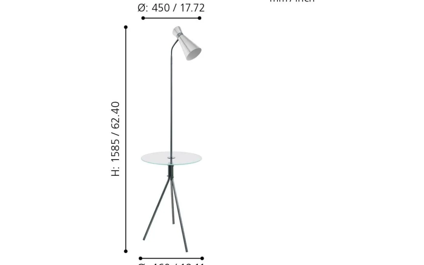 Denna golvarmatur i POLICARA-serien är gjord av satin nickelstål och vitt glas. Dessutom har den en genomskinlig kabel och kräver en E27-ljuskälla för att lysa. Den kan manövreras via en vippbrytare.