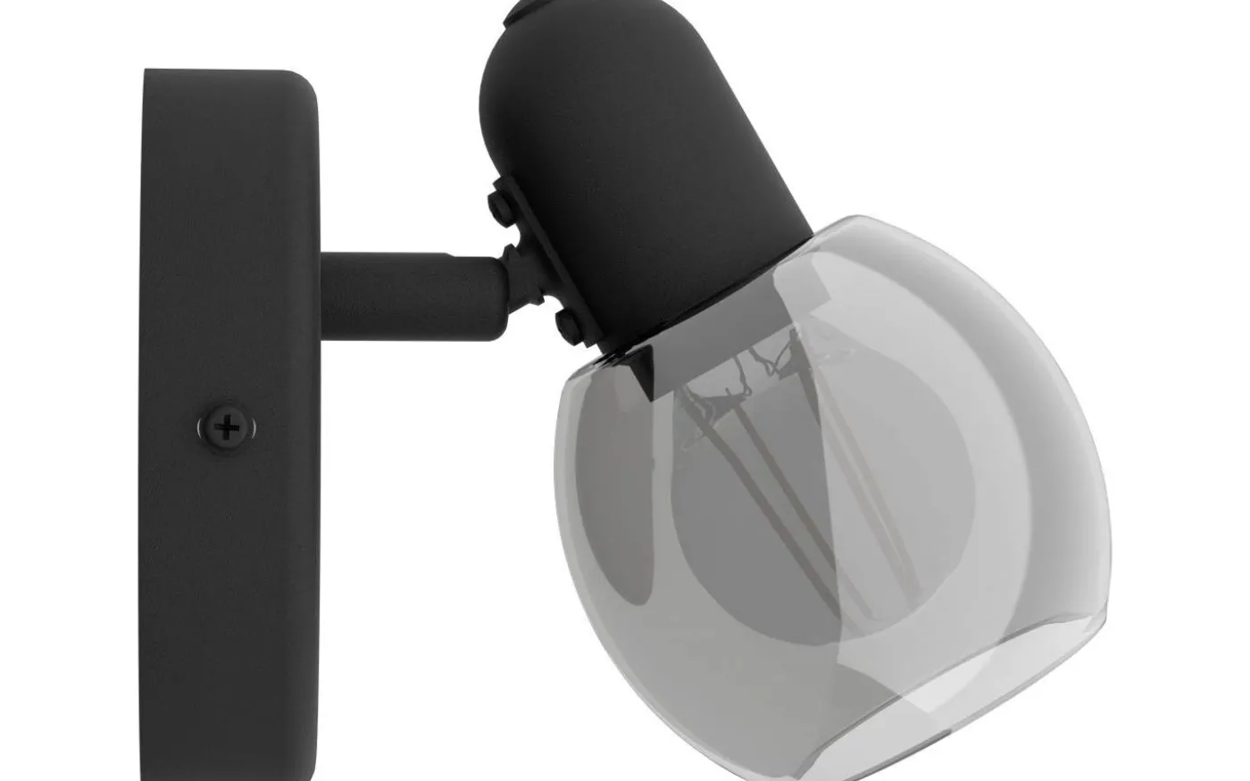 POLLICA vägg- och taklampa har en rund kropp i svart metall och en justerbar spotlight tillverkad av rökt svart glas. Den väggmonterade spotlighten smälter sömlöst in i moderna interiörer och är perfekt som takspotlight. Det svängbara huvudet låter dig justera ljuset för att accentuera alla områden, oavsett om det är i köket, vardagsrummet, sovrummet, hallen eller matsalen.