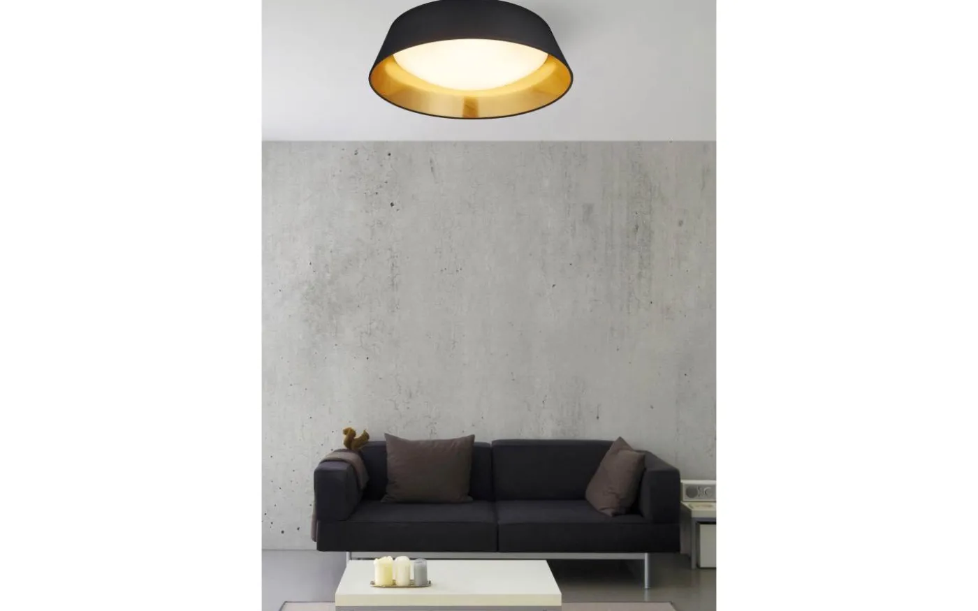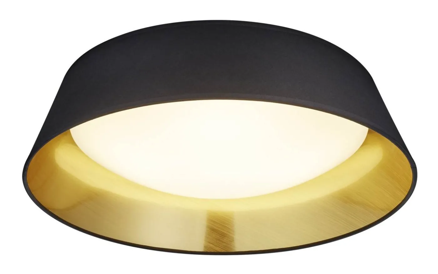 Den dekorativa taklampan PONTS ger vardagsrum en mysig karaktär och avger ett behagligt varmvitt ljus. Taklampans bas och ljusutsläppsyta är tillverkade av plast och omges av en enkel textilskärm. Taklampan med en diameter på 45 cm ger därmed ett mjukt, stämningsfullt ljus i dina vardagsrum och sovrum. Den svarta och guldfärgade tygskärmen är helt trendig och skapar ett sofistikerat helhetsintryck. Dessutom använder armaturerna modern LED-teknik, vilket står för hög ljuskvalitet. LED-ljuskällor kännetecknas av lång livslängd och låg värmeutveckling. Ljuskälla: inklusive 1x SMD, 18W · 1x 2000lm, 3000K. Extra information: Takmontering, IP20