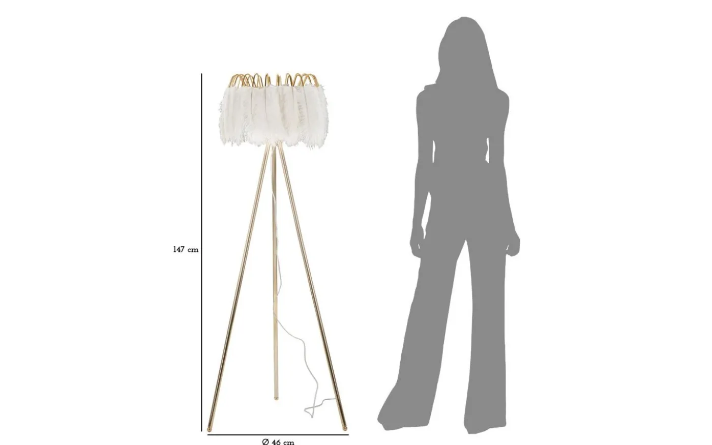 Quinto Golvlampa Fjäderställ 147cm Vit/Guld