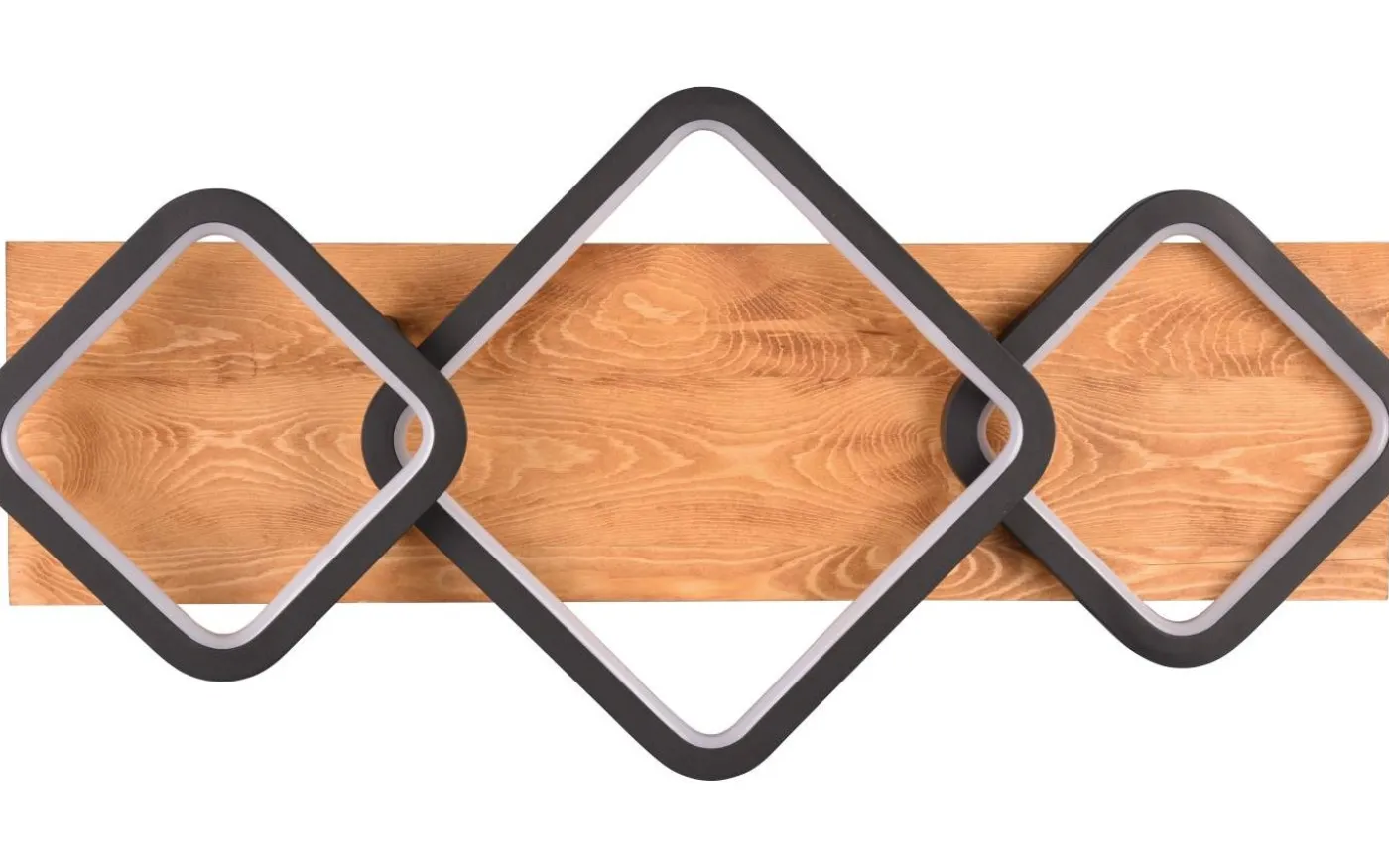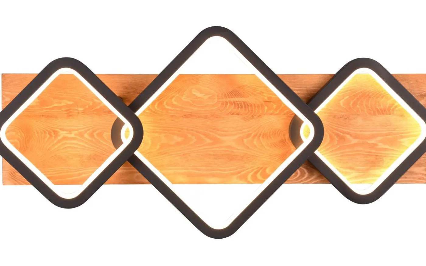 RAMA-armaturen har en lugnande effekt och förtrollar samtidigt. Den puristiska designen leker med geometriska former som skapar en behaglig ljuseffekt över hela ytan. Samspelet mellan indirekt ljus och mysigt trä inbjuder dig att drömma bort inom dina egna fyra väggar. Den integrerade SWITCH-dimmern gör det också möjligt att justera ljusstyrkan i tre steg (100 %, 50 %, 25 %) med en vanlig ljusströmbrytare. Den flexibla monteringen i tak eller vägg möjliggör många möjliga användningsområden. Den mattsvarta färgsättningen i kombination med det naturliga träet skapar moderna, hemtrevliga accenter. Dessutom har armaturerna modern LED-teknik, vilket står för hög ljuskvalitet. LED-ljuskällor kännetecknas av lång livslängd och låg värmeutveckling. Ljuskälla: inklusive 1x SMD, 32W · 1x 3800lm, 3000K. Extra information: IP20, Dimbar via strömbrytare, Vägg- och takmontering