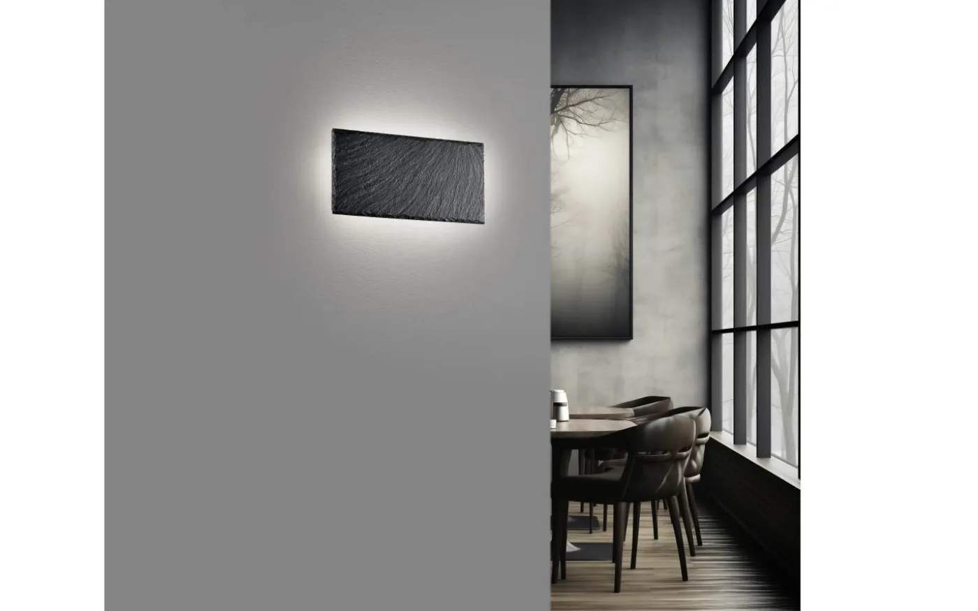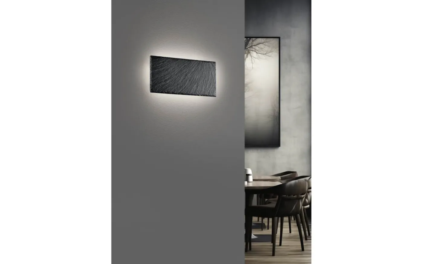 Garanterat blickfång! Vägglampan RAVEN fungerar inte bara som en enkel vägglampa, dess eleganta skifferdesign skapar ett modernt utseende med dekorativ karaktär. Det minimalistiska utseendet gör att den indirekta belysningen står i centrum och skapar en behaglig och atmosfärisk atmosfär. Armaturen har också en SWITCH-dimmer, vilket gör att ljusstyrkan kan justeras från 100 % till 50 % och 25 % med en vanlig ljusströmbrytare. Skifferdesignen i svart skapar ett modernt utseende och gör den enkel att integrera i befintliga inredningskoncept. Dessutom använder armaturerna modern LED-teknik, vilket står för hög ljuskvalitet. LED-ljuskällor kännetecknas av lång livslängd och låg värmeutveckling. Ljuskälla: inklusive 1x SMD LED, 9W · 1x 1000lm, 3000K. Extra information: Indirekt belysning, IP20, Ej dimbar, Dimbar via strömbrytare, Vägg- och takmontering