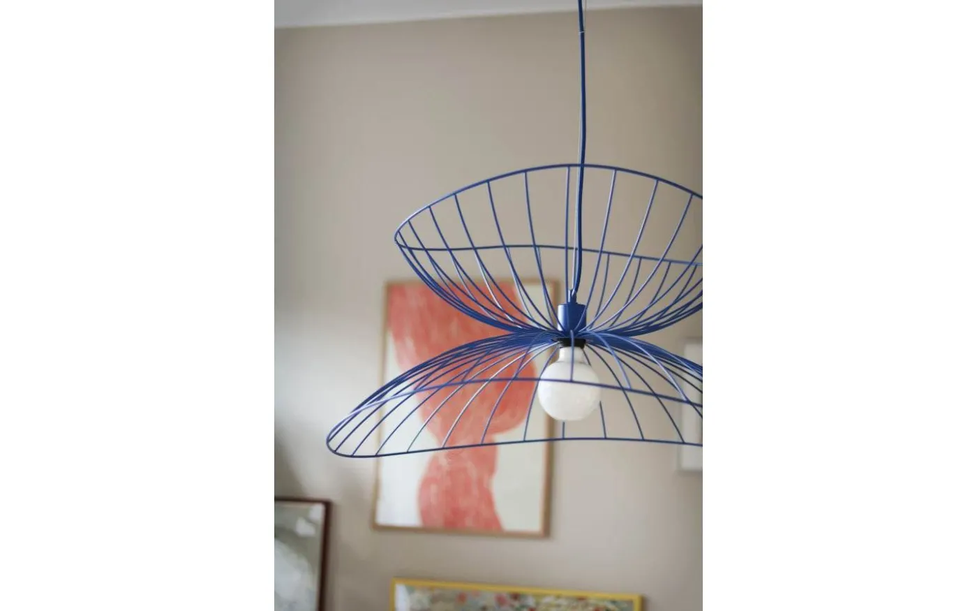 Ray taklampa från Globen Lighting är en riktigt läcker taklampa i grafisk design. Trots att den är gjord i metall har den härligt mjuka och böljande former som kombineras med de raka metallstängerna.