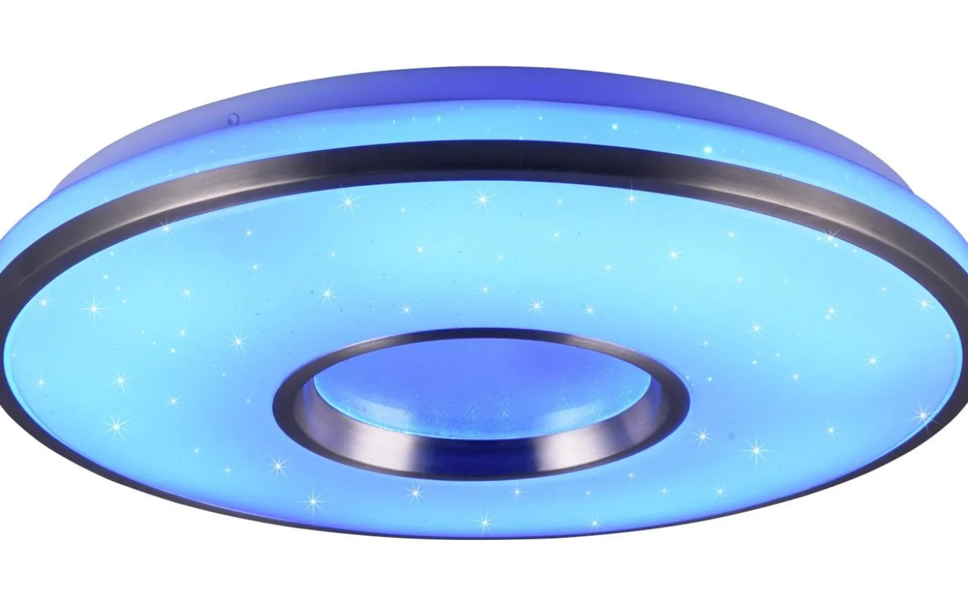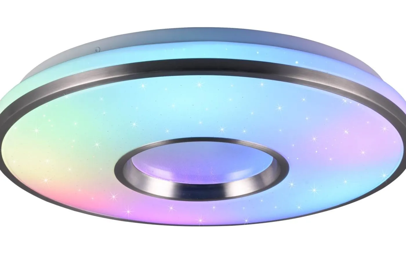 Få in färg i ditt hem! REALTA taklampa imponerar med sin integrerade RGBW-färgväxlare, som genererar alla tänkbara färgtoner och skapar en stämningsfull miljö. Dynamic Light-funktionen skapar en fascinerande atmosfär med förprogrammerade, dynamiska ljusscenarier som ger fascinerande ljuseffekter till den flerfärgade eller monokroma stämningsbelysningen. Du kan bekvämt styra ljusfärg och ljusstyrka på avstånd med den medföljande fjärrkontrollen. Den glittrande stjärneffekten på stjärnljusskyddet fascinerar både unga och gamla och ger REALTA en speciell touch till ditt hem. Tack vare det enkla och moderna utseendet i vitt och borstad aluminium kan taklampan enkelt hitta en plats i alla bostadsutrymmen. Dessutom har armaturerna modern LED-teknik, vilket står för hög ljuskvalitet. LED-ljuskällor kännetecknas av lång livslängd och låg värmeutveckling. Ljuskälla: inklusive 1x SMD, 21W · 1x 2200lm, 2700 – 6500K. Ljuskälla: 2 inklusive 1x SMD, 3W. Extra information: Funktion110, Integrerad dimmer, IP20, Steglöst variabel ljusfärg, Ej lämplig för extern dimmer, Fjärrkontroll, RGBW-färgväxlande, Stjärnljuseffekt, Vägg- och takmontering
